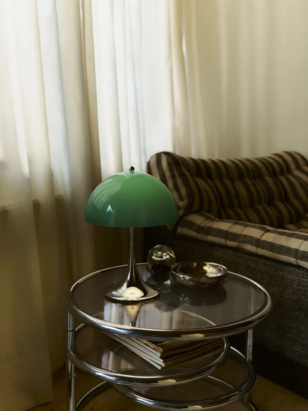 Przenośna Panthella to kompaktowa interpretacja kultowej lampy stołowej Panthella 400. Dzięki mniejszym rozmiarom idealnie odnajduje się na parapetach, półkach czy stolikach bocznych, oferując swobodę aranżacji i pełną mobilność. Niezależnie od wybranego koloru czy wykończenia, lampa przenośna Panthella wnosi do wnętrza subtelne, eleganckie światło i charakterystyczny styl duńskiego designu.