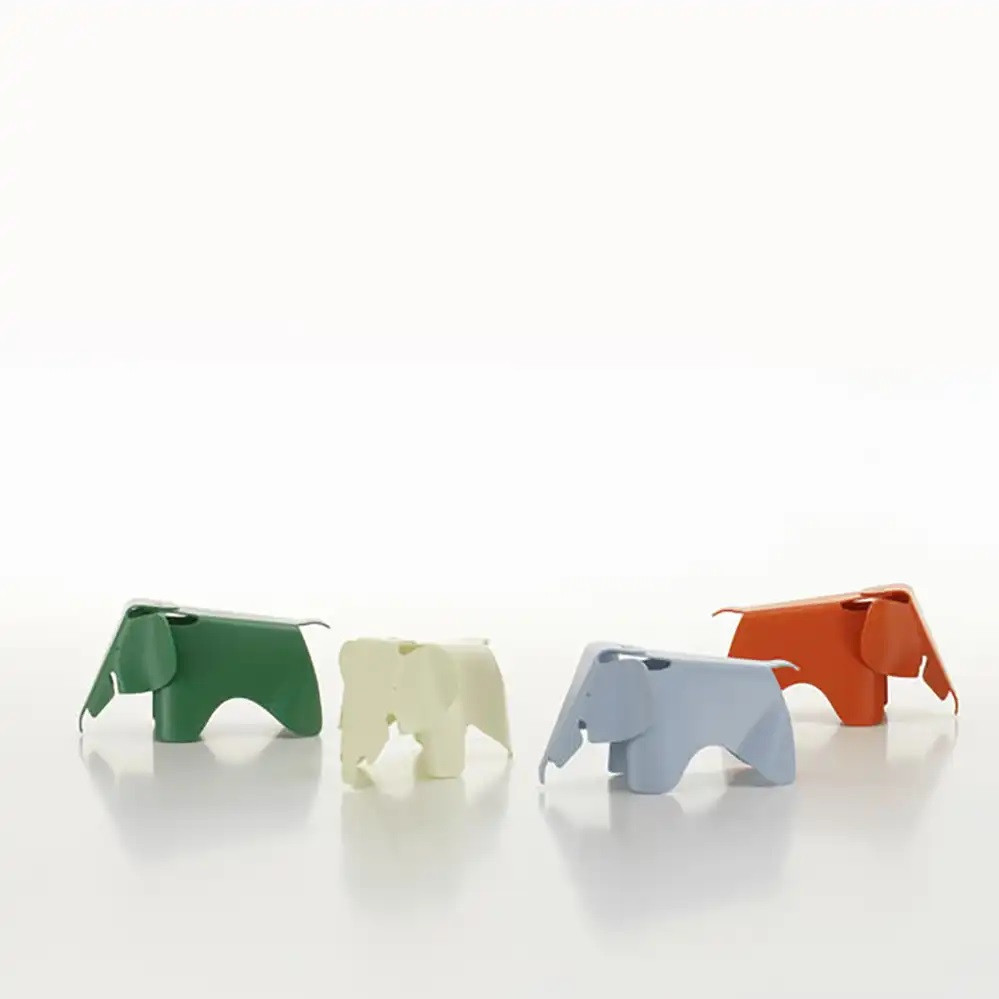 Eames Elephant (Small) RE marki Vitra to miniaturowa wersja kultowego projektu Charlesa i Ray Eames z 1945 roku. Wykonany z barwionego w masie tworzywa pochodzącego z recyklingu odpadów pokonsumenckich, łączy ponadczasowy design z ekologicznym podejściem do produkcji. Ta urocza figura dekoracyjna o matowym wykończeniu zachwyca miękkimi, organicznymi liniami i subtelną formą, która wnosi do wnętrza lekkość, ciepło i odrobinę humoru.