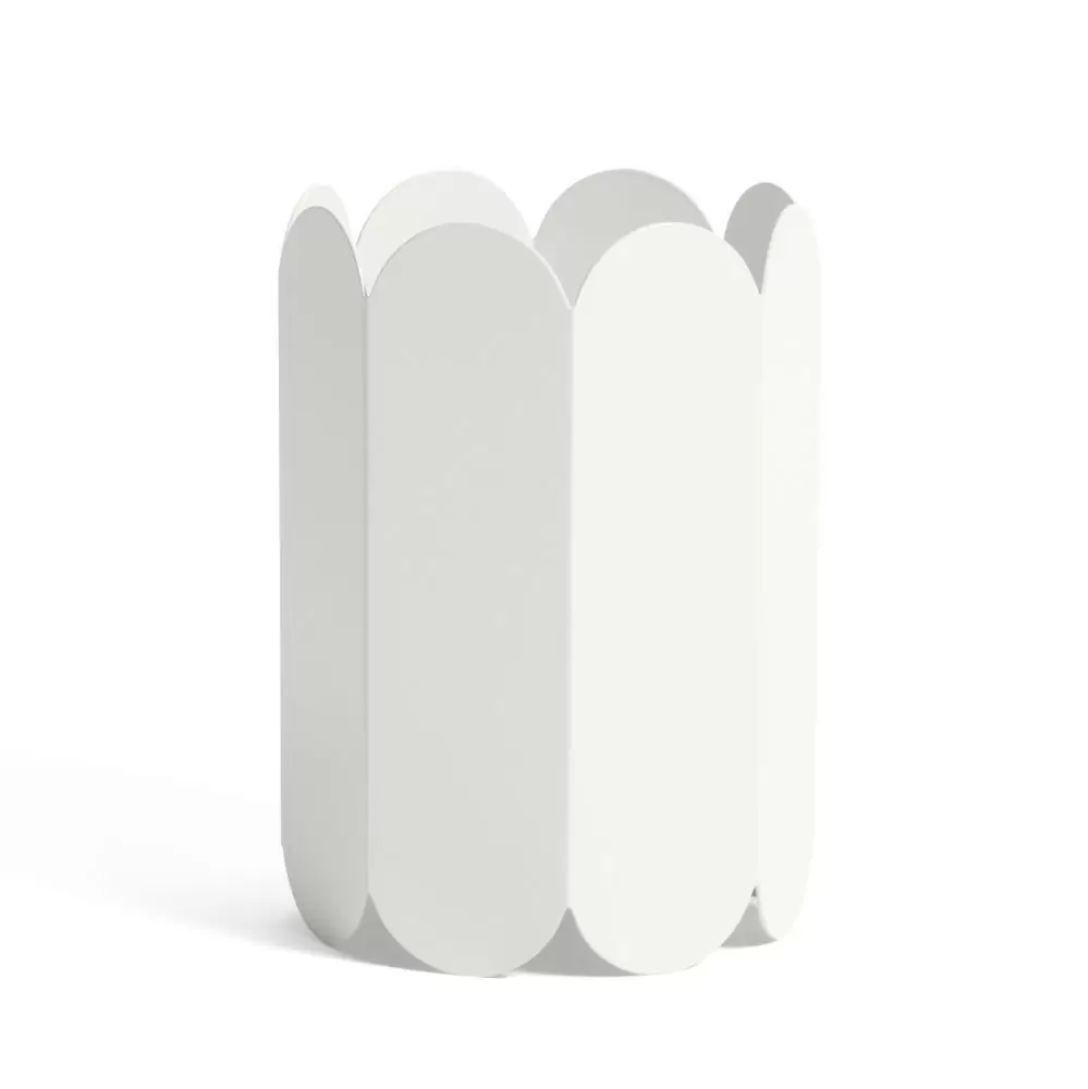 Wazon Arcs składa się z ujednoliconego łańcucha pionowych łuków, które tworzą elegancką sylwetkę. Wazon wykonany jest ze stali nierdzewnej z lustrzanym wykończeniem lub stali w kolorze zielonym.