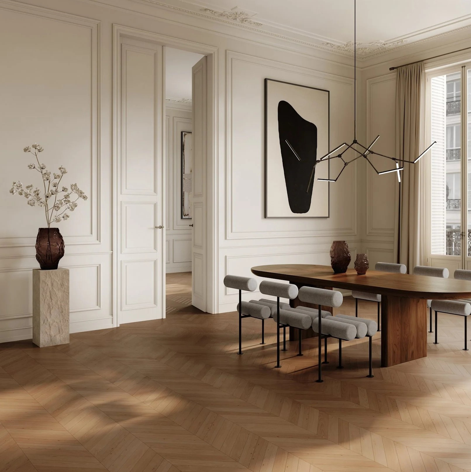 Każdy egzemplarz jest unikatowy, a jego krystaliczna przejrzystość wprowadza do wnętrza nastrojową głębię i subtelną elegancję. Wazon Katachi doskonale sprawdza się zarówno solo, jako dekoracyjny obiekt, jak i w zestawieniu z innymi rozmiarami kolekcji, dodając wnętrzom elegancki ruch i harmonię. Idealny do salonu, jadalni czy przestrzeni biurowej, łącząc wysmakowany design z ponadczasową estetyką Wabi-Sabi.