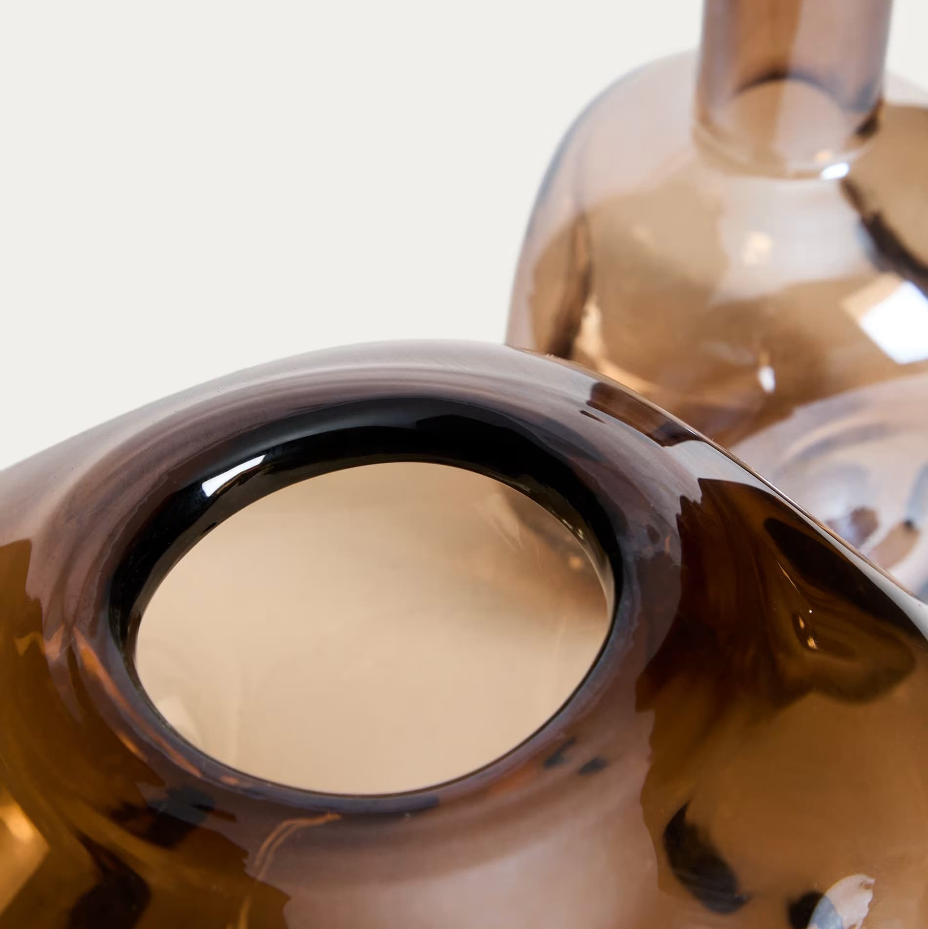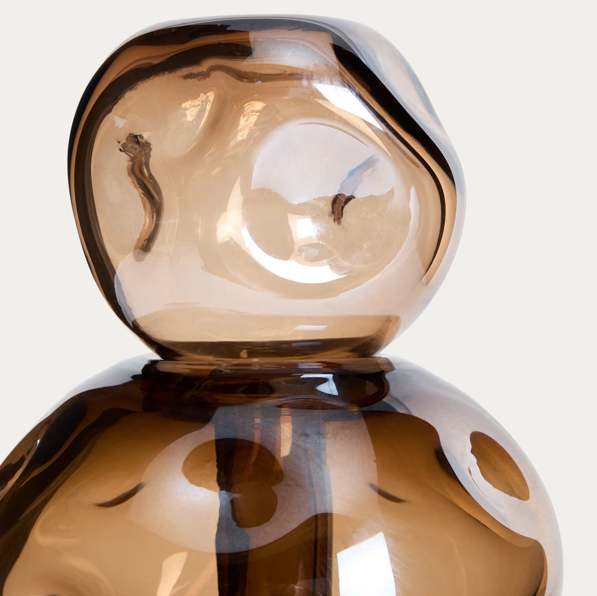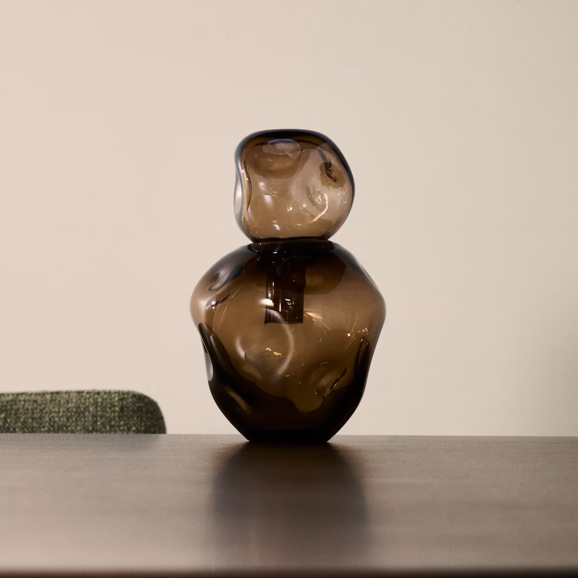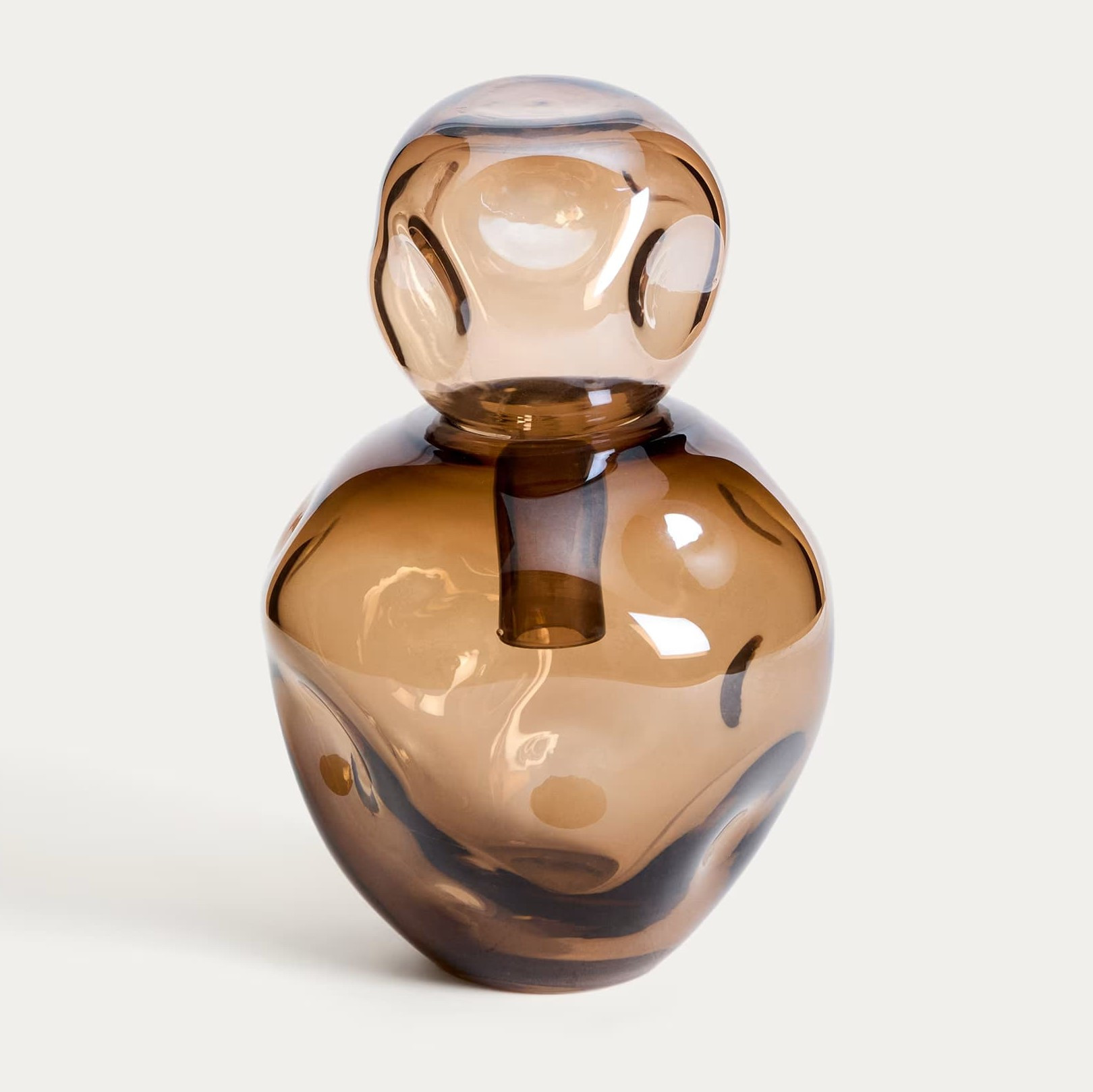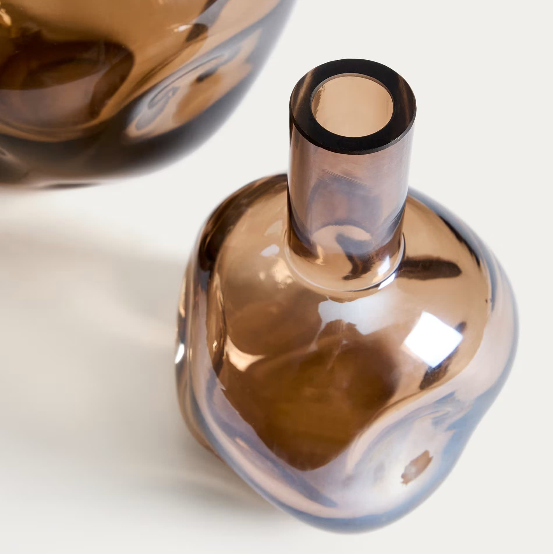 Wazon Olivet marki Kave Home to wyjątkowy element dekoracyjny, który łączy nowoczesną elegancję z rzemiosłem artystycznym. Wykonany w procesie ręcznego dmuchania szkła, zachwyca subtelnymi różnicami w kształcie i odcieniach – każdy egzemplarz jest unikalny i niepowtarzalny. Organiczne, zaokrąglone linie nadają mu miękkości i lekkości, a błyszczące, brązowe szkło pięknie odbija światło, wprowadzając do wnętrza świeżość i spokój.