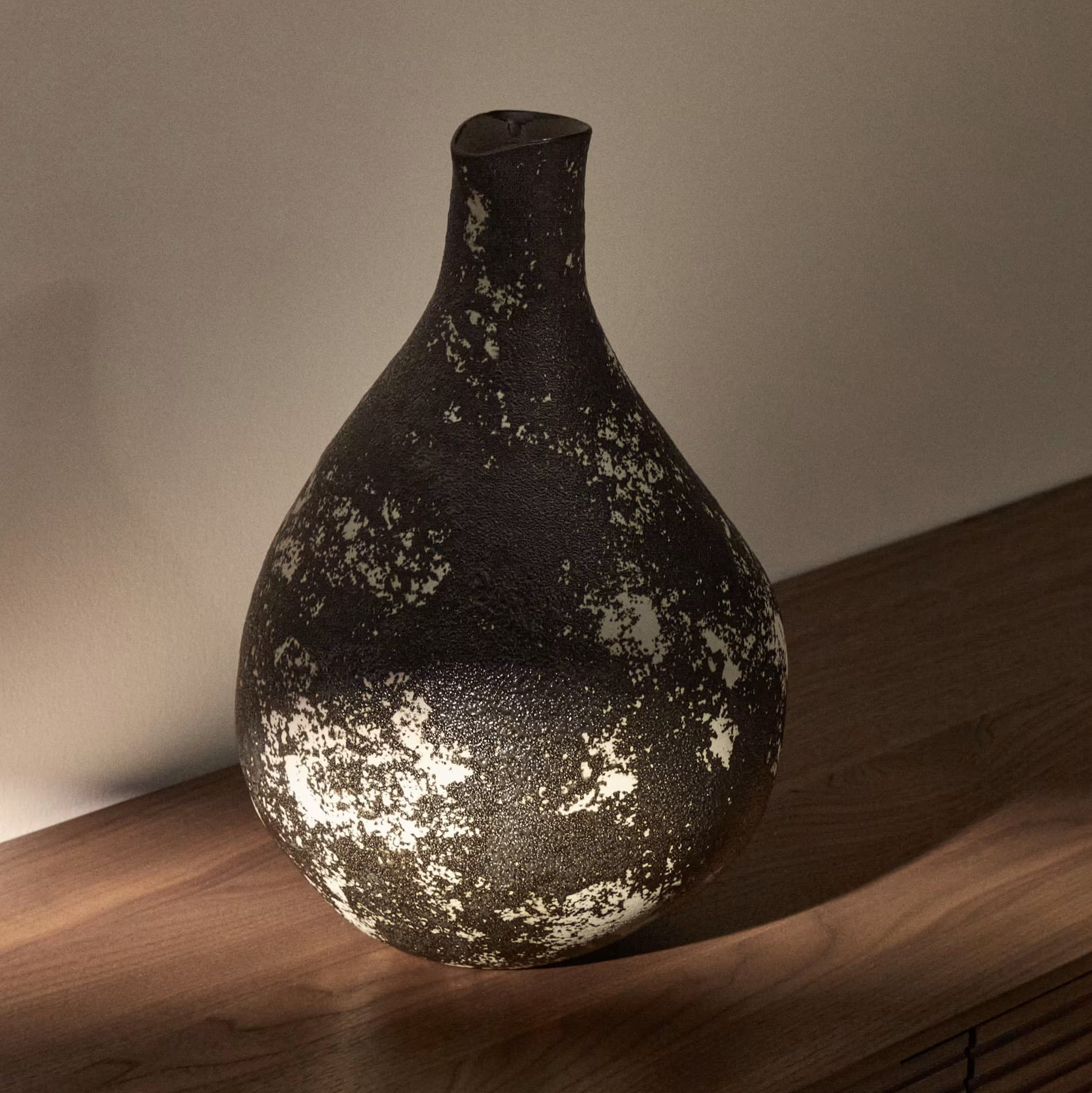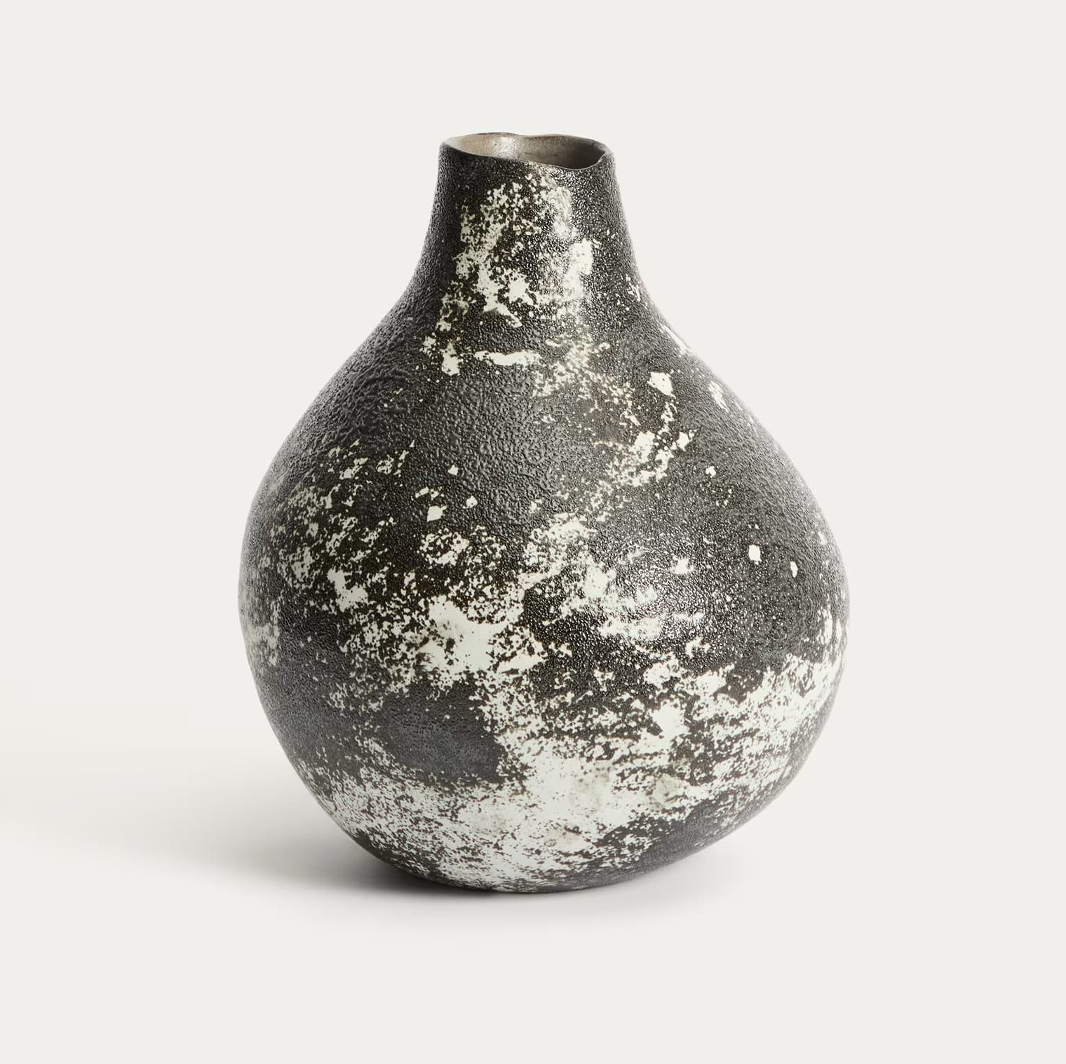 Wazon Orelin marki Kave Home to stylowy dodatek, który łączy nowoczesny design z ręcznym rzemiosłem. Wykonany z wysokiej jakości ceramiki, został ręcznie oszklony, dzięki czemu każdy egzemplarz jest unikalny różni się subtelnie kolorem i fakturą. Czarno-biała glazura tworzy elegancki kontrast, a organiczny, okrągły kształt z szeroką podstawą nadaje mu stabilność i harmonię.