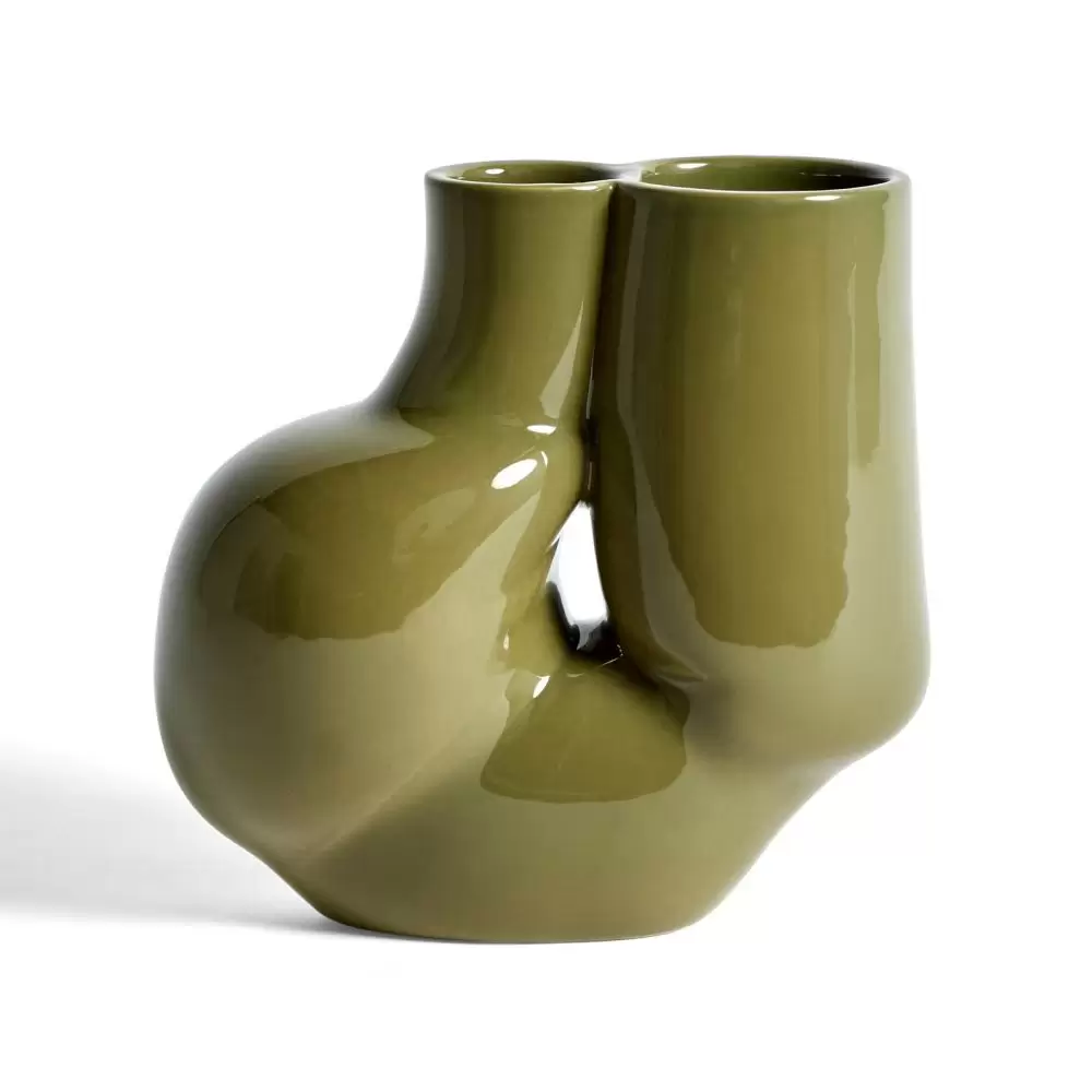 Wazon Chubby dostępny jest w 2 kolorach; oliwkowa zieleń oraz żółtym.