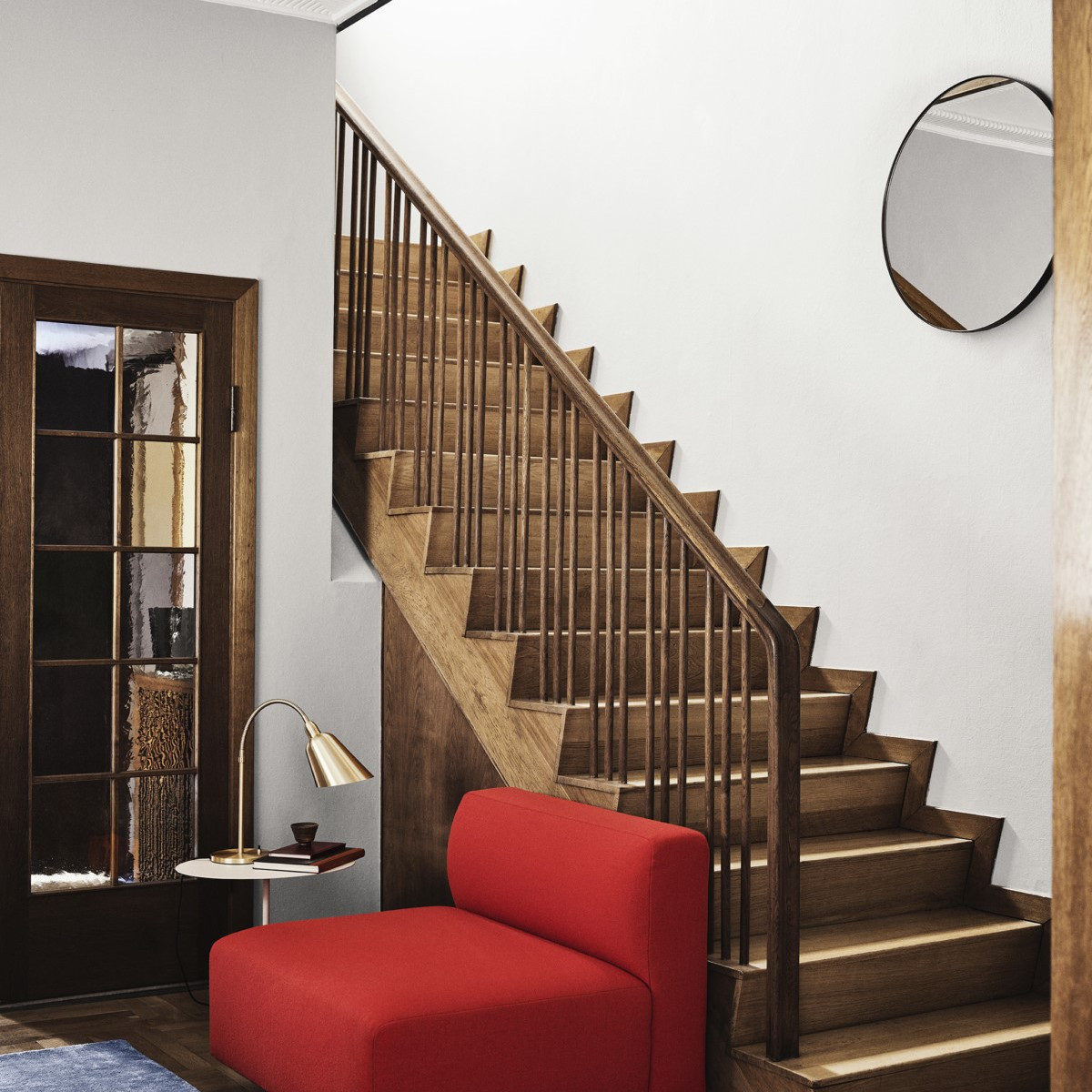 Amore SC49 marki &Tradition to eleganckie lustro ścienne o wyraźnej, geometrycznej formie. Model powstał pierwotnie dla hotelu SAS Royal w Kopenhadze i dziś stanowi ikonę nowoczesnego designu w duchu skandynawskiego minimalizmu. Okrągła tafla o średnicy 115 cm została osadzona w precyzyjnie spawanej, polerowanej ramie z brązowanego mosiądzu. Subtelny połysk metalu kontrastuje z chłodnym, srebrzystym lustrem, tworząc wyrafinowaną kompozycję pasującą do salonu, sypialni czy eleganckiego przedpokoju.