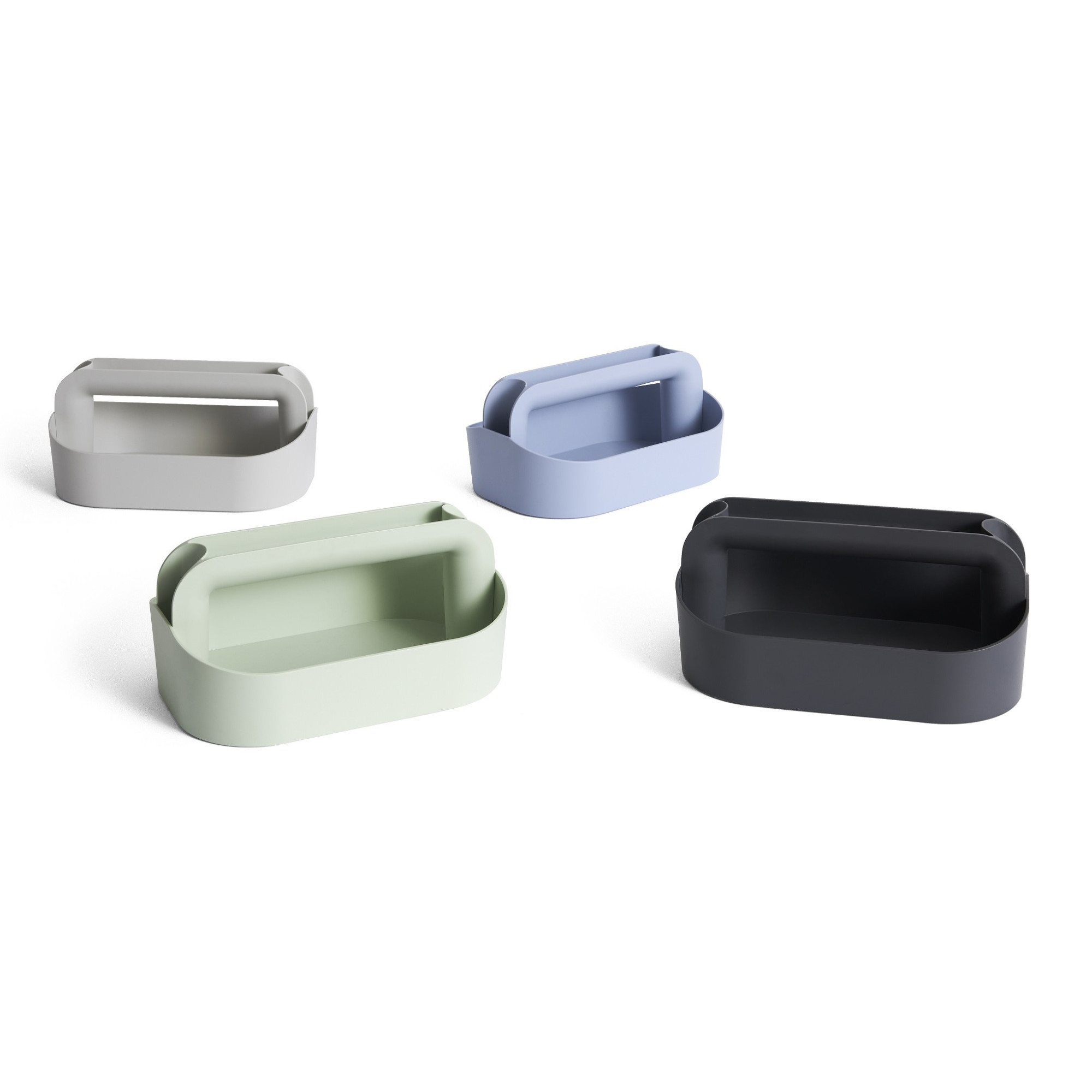 HAY Tool Box to praktyczny, designerski organizer, który łączy funkcjonalność z nowoczesnym stylem. Wykonany z lekkiego, a jednocześnie wytrzymałego, 100% przetworzonego ABS-u z dodatkiem stali nierdzewnej, sprawdzi się zarówno w domu, biurze, jak i w pracowni. Przemyślane przegrody po bokach i na górze uchwytu maksymalnie wykorzystują przestrzeń, umożliwiając wygodne przechowywanie narzędzi, akcesoriów biurowych czy drobnych akcesoriów.