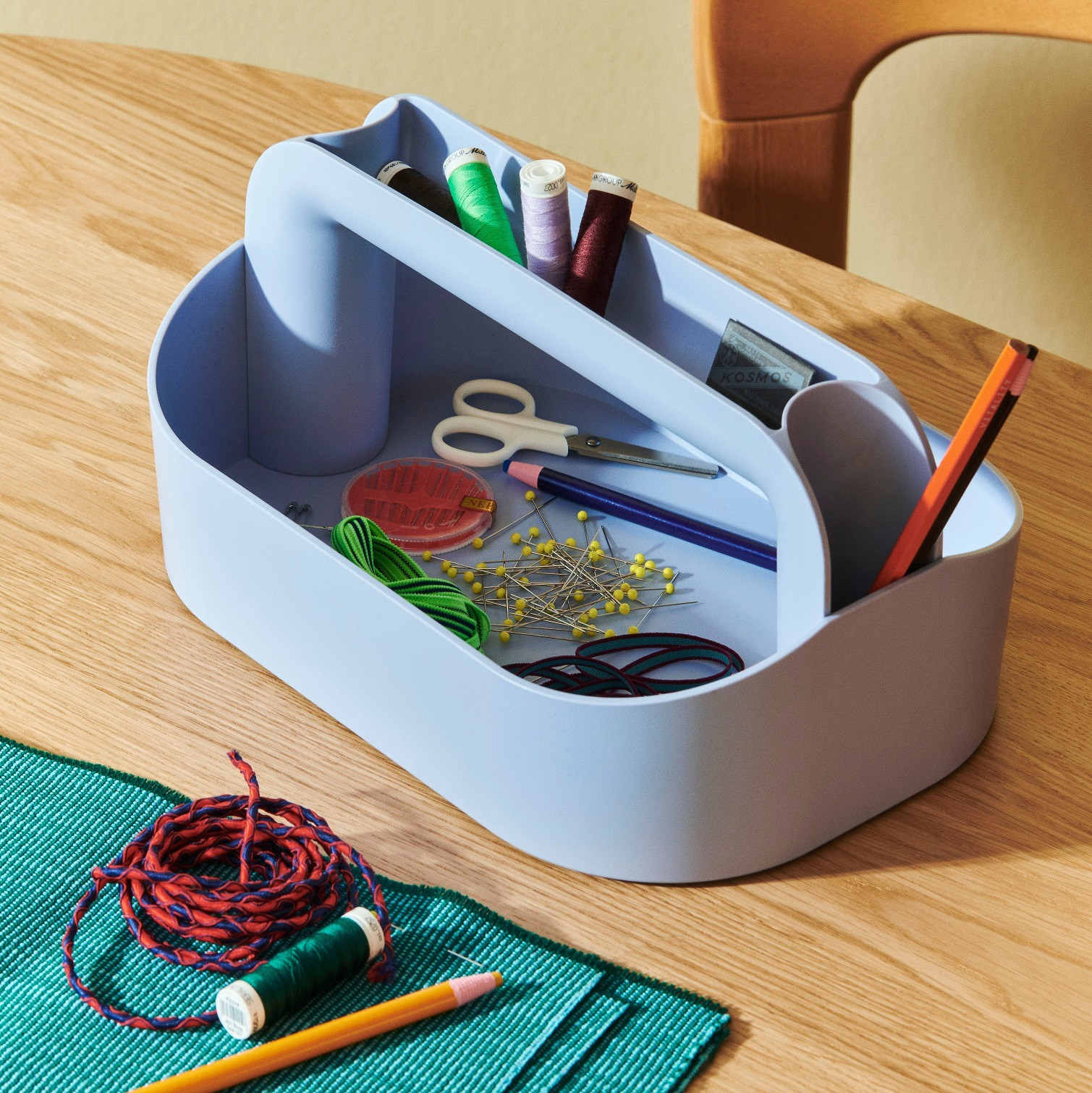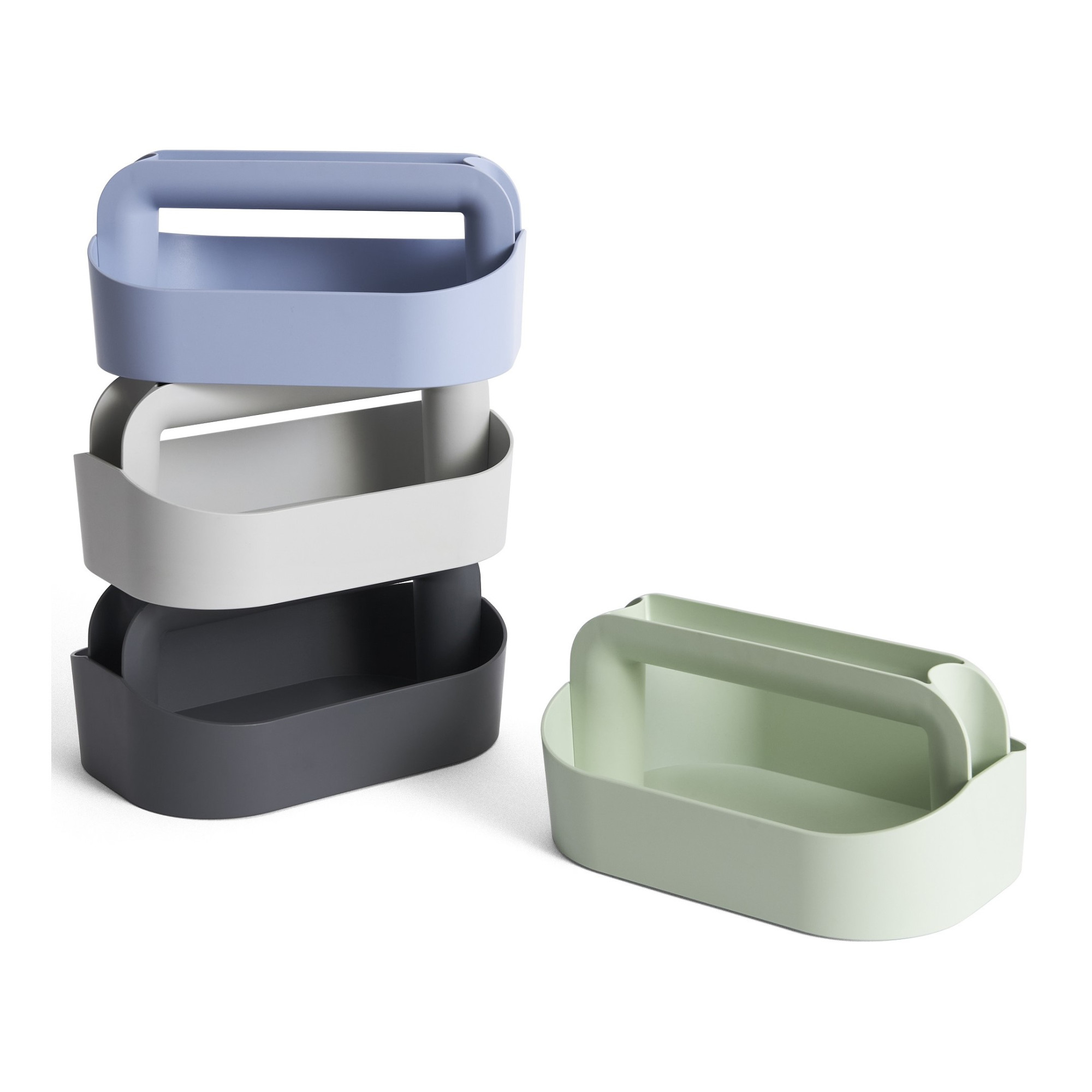 HAY Tool Box to praktyczny, designerski organizer, który łączy funkcjonalność z nowoczesnym stylem. Wykonany z lekkiego, a jednocześnie wytrzymałego, 100% przetworzonego ABS-u z dodatkiem stali nierdzewnej, sprawdzi się zarówno w domu, biurze, jak i w pracowni. Przemyślane przegrody po bokach i na górze uchwytu maksymalnie wykorzystują przestrzeń, umożliwiając wygodne przechowywanie narzędzi, akcesoriów biurowych czy drobnych akcesoriów.