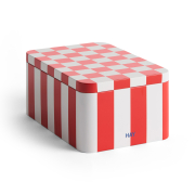 Pojemniki Tin to kolekcja funkcjonalnych i dekoracyjnych pudełek do przechowywania z kolorowymi wzorami w kratkę i błyszczącym wykończeniem. Pokrywka i pojemnik są płynnie wyrównane tworząc elegancki, jednolity wygląd zapewniając jednocześnie szczelne dopasowanie, które nadaje się również do przechowywania np; suchej żywności.