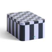 Pojemniki Tin to kolekcja funkcjonalnych i dekoracyjnych pudełek do przechowywania z kolorowymi wzorami w kratkę i błyszczącym wykończeniem. Pokrywka i pojemnik są płynnie wyrównane tworząc elegancki, jednolity wygląd zapewniając jednocześnie szczelne dopasowanie, które nadaje się również do przechowywania np; suchej żywności.