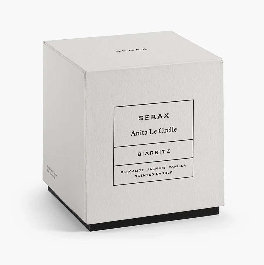 Ceramiczne naczynie o stonowanej formie można ponownie wykorzystać jako stylowy pojemnik, nadając mu drugie życie. Biarritz Serax jest ręcznie zalewana naturalnym woskiem sojowym z dodatkiem specjalnie opracowanej mieszanki olejków eterycznych, a jej zapach stworzono w Grasse.