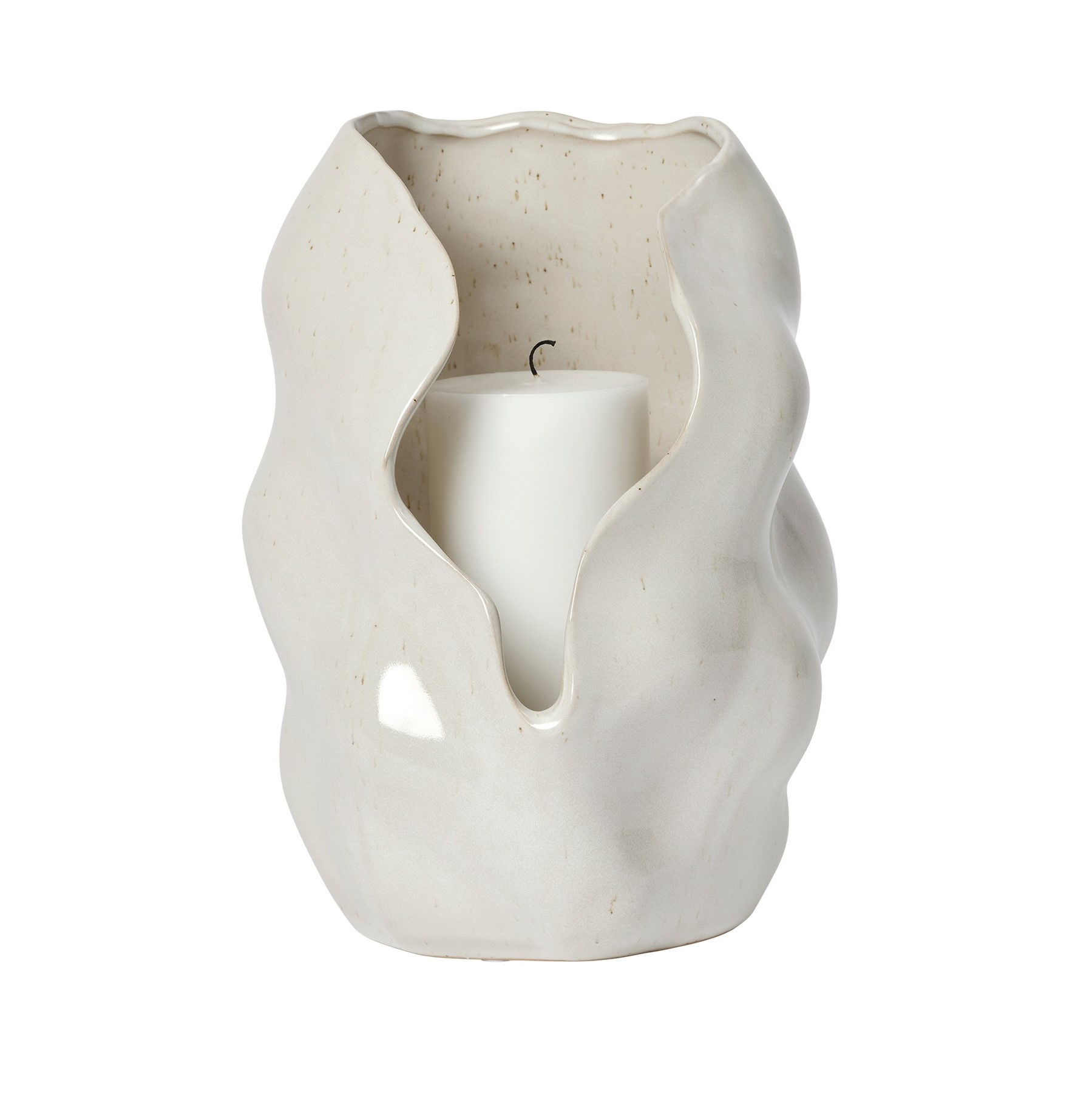 Hekla to ceramiczny świecznik z błyszczącym wykończeniem, który bez trudu wkomponuje się do domowej aranżacji. Wyjątkowy kształt imitujący małą jaskinię. Ten klimatyczny świecznik dostępny jest w 2 rozmiarach, przeznaczony do świec słupkowych. Dzięki przyjemnemu, nastrojowemu światłu z pewnością przekształci otoczenie w przytulną oazę.