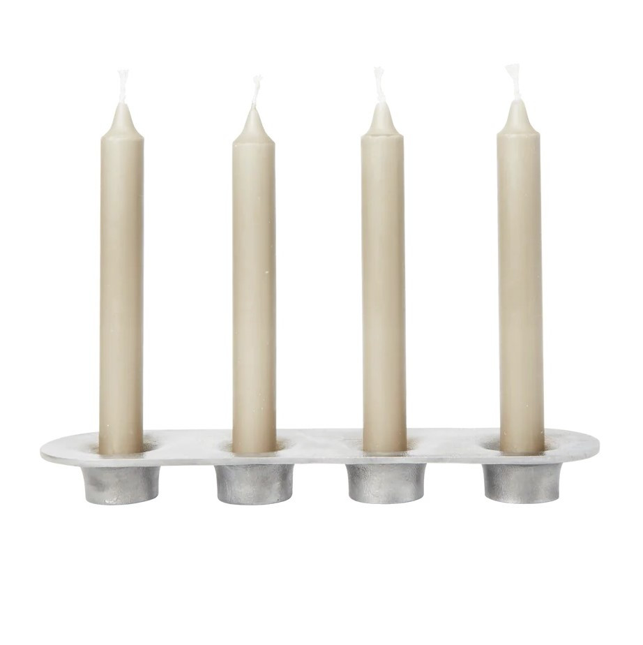 Soothe duńskiej marki Ferm Living to elegancki świecznik, który łączy minimalistyczny skandynawski design z funkcjonalnością. Wykonany w 100% z odlewanego aluminium z recyklingu i wykończony teksturą piaskowego odlewu, prezentuje się lekko, a jednocześnie solidnie. Pomieści cztery świece, oferując nowoczesną alternatywę dla klasycznych wieńców adwentowych.
