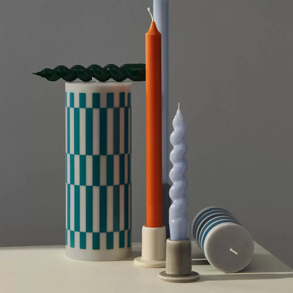 Świecznik Tube z ceramiki pokrytej półprzezroczystą glazurą łączy minimalistyczny, cylindryczny kształt z subtelną, stonowaną paletą kolorów. Zaprojektowany do użytku ze świecami HAY, posiada okrągłą podstawę, która stabilizuje projekt i wychwytuje każdy spływający wosk.