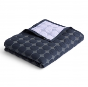 Narzuta Mega Dot dostępna jest w kilku różnych kolorach oraz rozmiarach. Wersja prezentowana w kolorze granatowym to wymiar; 195x245 cm.