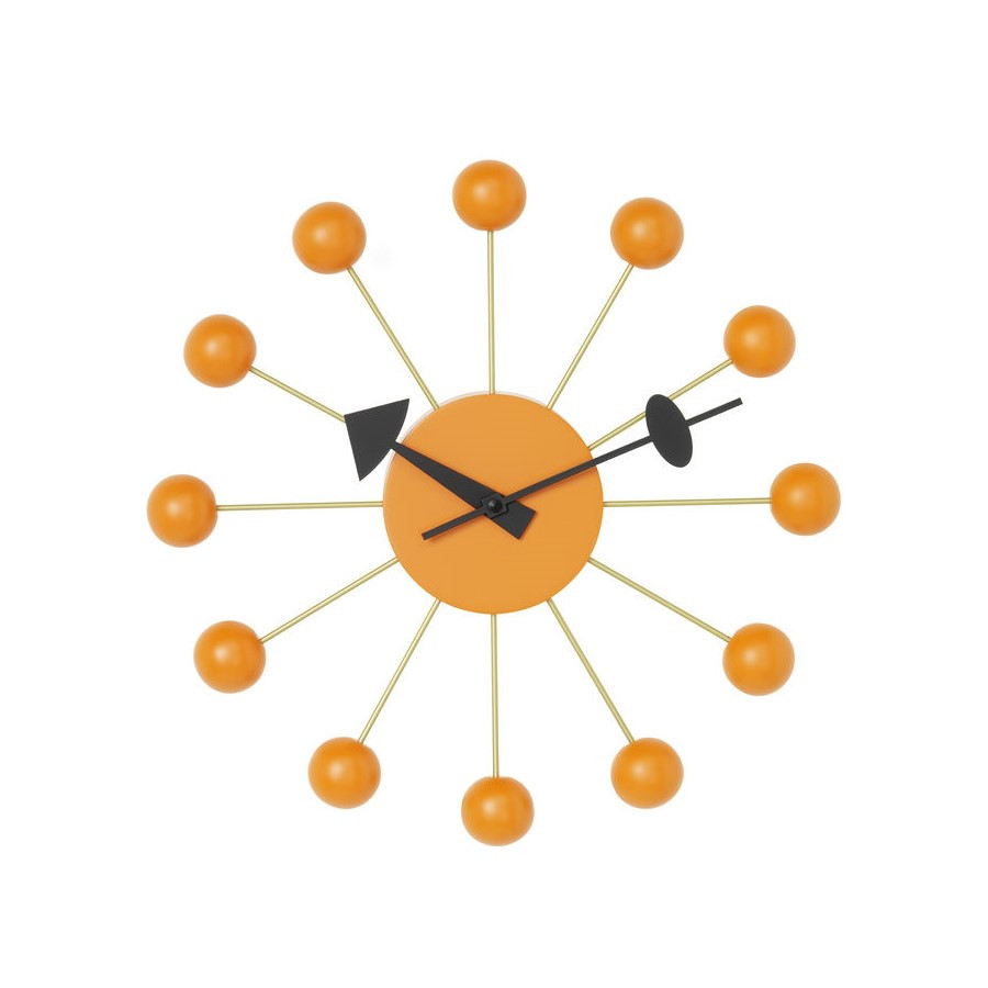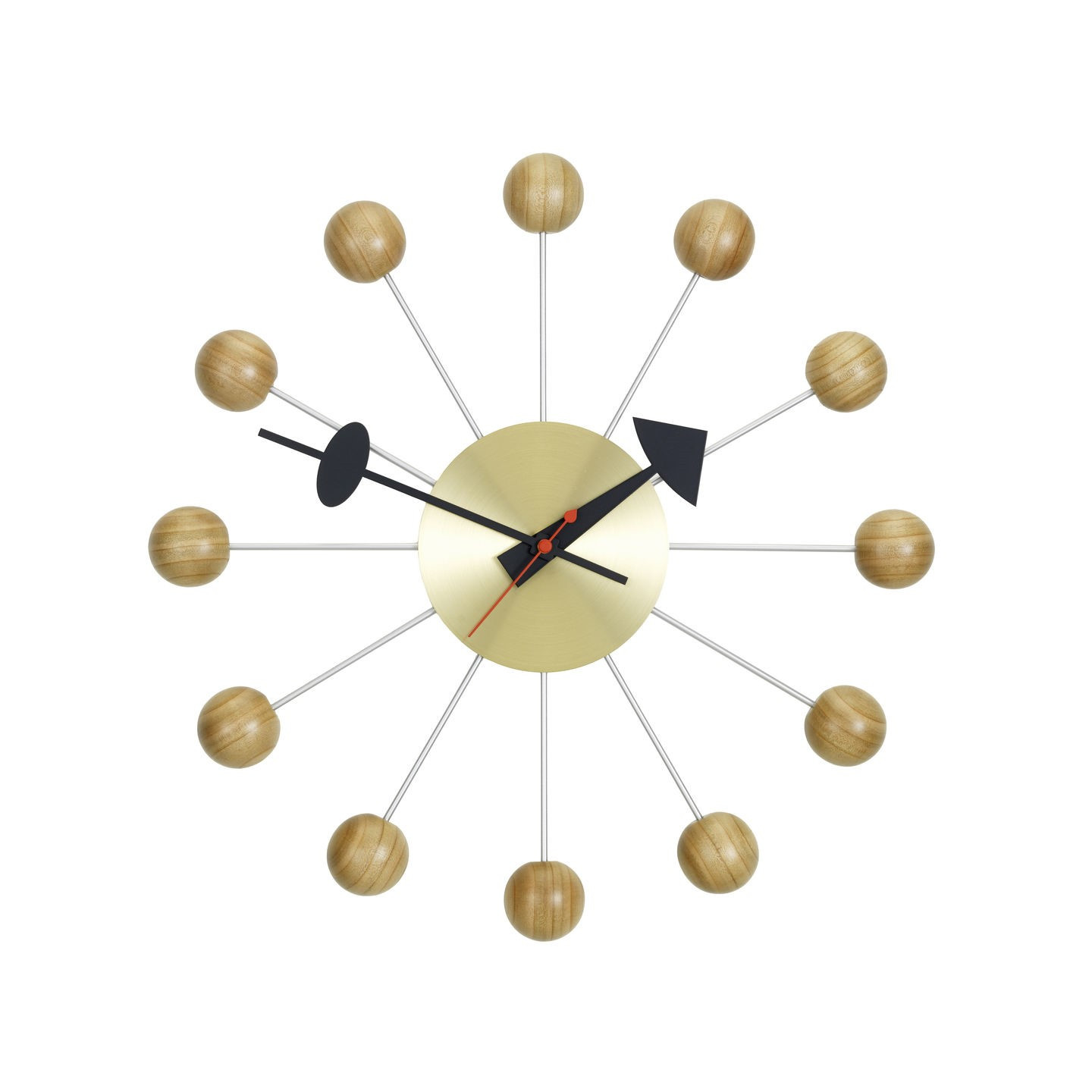 Ball Clock Vitra to ikoniczny zegar ścienny z kolekcji Wall Clocks, łączący funkcjonalność z artystycznym designem. Zaprojektowany przez George’a Nelsona, powstał z inspiracji obserwacją, że większość osób odczytuje czas z pozycji wskazówek, dlatego projektant zrezygnował z cyfr, tworząc minimalistyczną i dekoracyjną formę. Ten nowoczesny zegar ścienny wykonany jest z różnych gatunków drewna i metalu, z dbałością o detale i wysoką jakość wykończenia. Wyposażony w precyzyjny mechanizm kwarcowy zasilany baterią 1,5 V, gwarantuje niezawodne odmierzanie czasu.