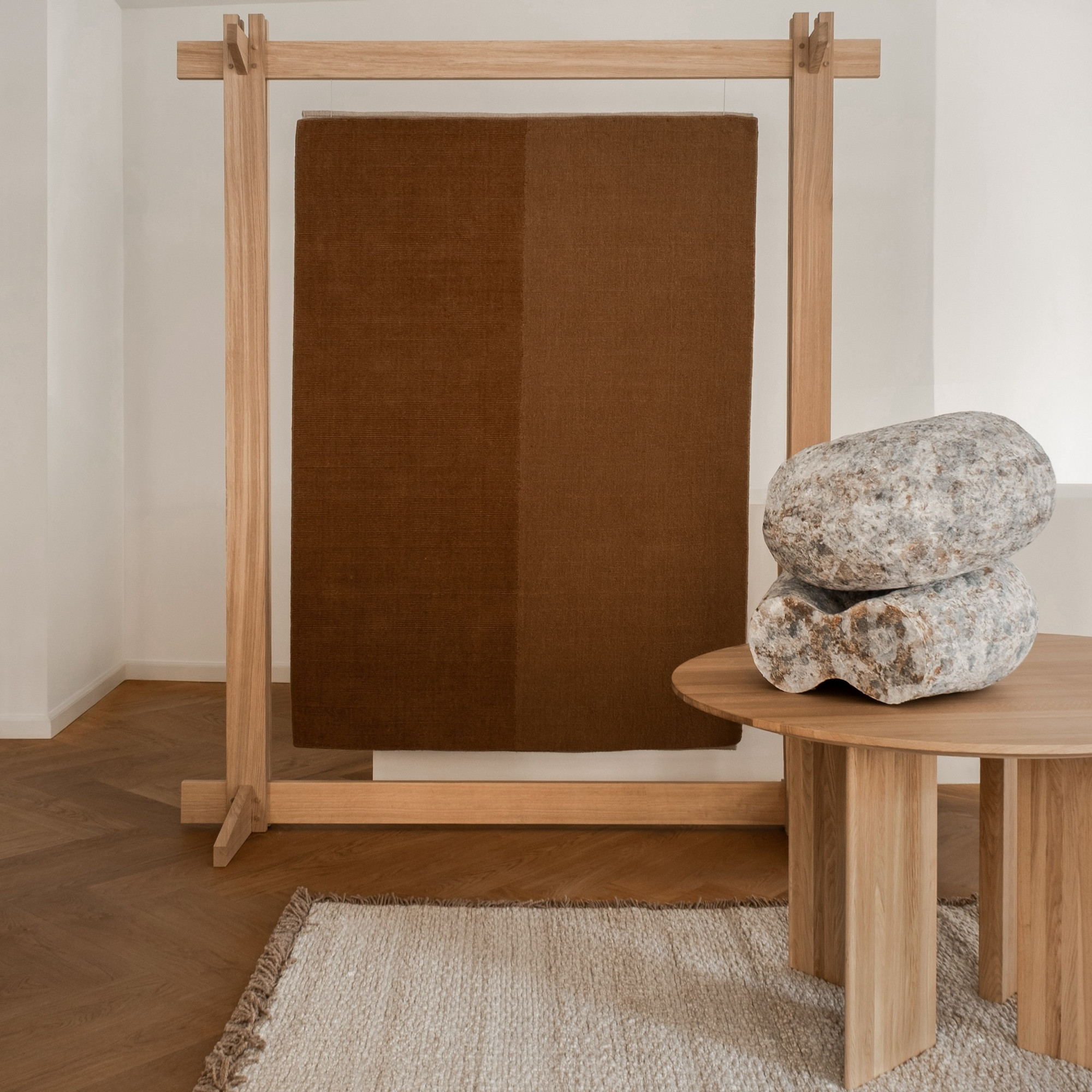 Dywan Echo Yano z kolekcji Woven Matter od Linie Design to ręcznie tkany dywan typu loom-knotted, zaprojektowany przez Urd Moll Gundermann. Wykonany w 100% z wełny nowozelandzkiej, z osnową z organicznej bawełny, zapewnia wyjątkową miękkość i ciepło pod stopami. Jego wyrafinowany design opiera się na subtelnie kontrastujących połowach, które w połączeniu z delikatną fakturą tworzą harmonijną grę światła i cienia.