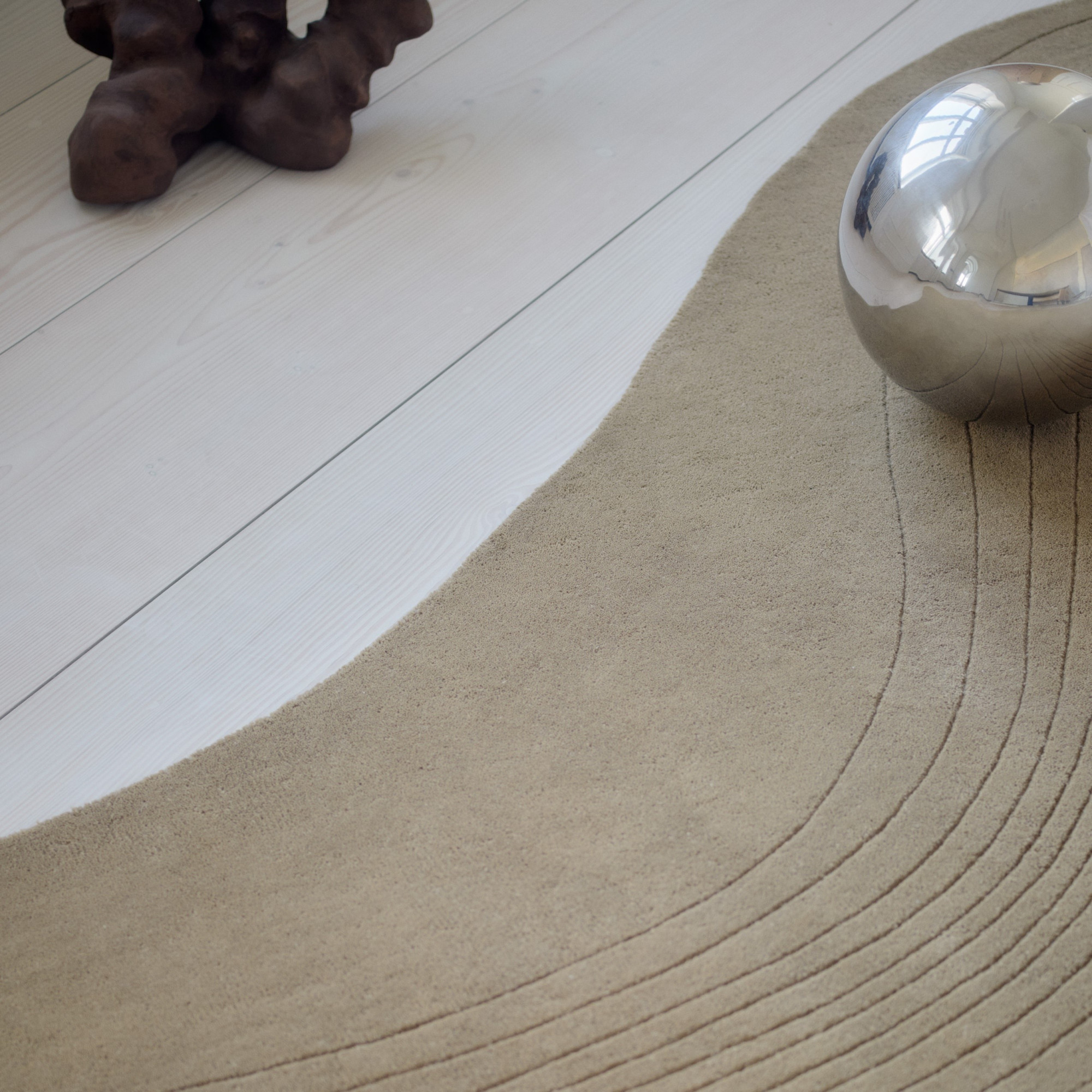 Dywan Fluid Arc duńskiej marki Linie Design to ręcznie tuftowany, luksusowy dywan zaprojektowany przez Urd Moll Gundermann. Wykonany w 100% z naturalnej wełny, zachwyca organicznymi, meandrującymi liniami, które harmonijnie komponują się w nowoczesnych i klasycznych wnętrzach. Różnice w wysokości włosia (12 mm) tworzą subtelne rowki, nadając powierzchni dywanu głębię i ciekawą fakturę dotykową.