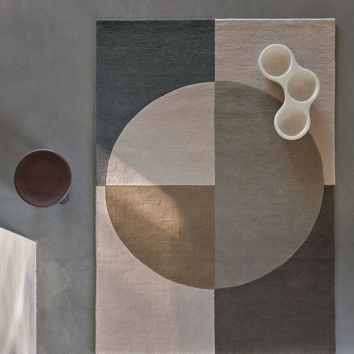 Dywan Radiality zaprojektowany przez Urd Moll Gundermann to nowoczesna kompozycja form i barw oparta na centralnym okręgu. Wyrazisty układ kolorystycznych bloków tworzy dynamiczną, graficzną strukturę, która przyciąga wzrok i nadaje wnętrzu charakteru.