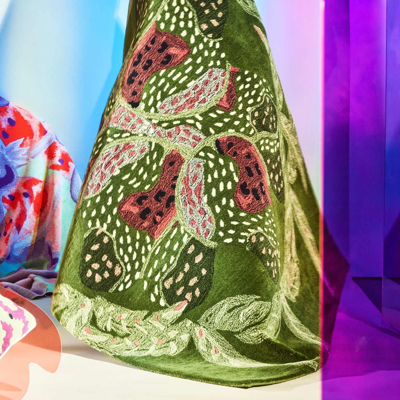 Wełniany dywan Oasis w głębokim, butelkowozielonym odcieniu to projekt ilustratorki Minni Havas. Jego unikalny wzór łączy motywy owoców z roślinnymi formami w odcieniach bieli, lilii, ciemnej zieleni i czerni. Dywan został ręcznie wykonany techniką tuftowania z luksusowej, grubej wełny, dzięki czemu zachwyca miękkością i trwałością. Bawełniana podstawa nadaje mu solidności i stabilności, sprawiając, że będzie stylowym i praktycznym dodatkiem do każdego wnętrza.