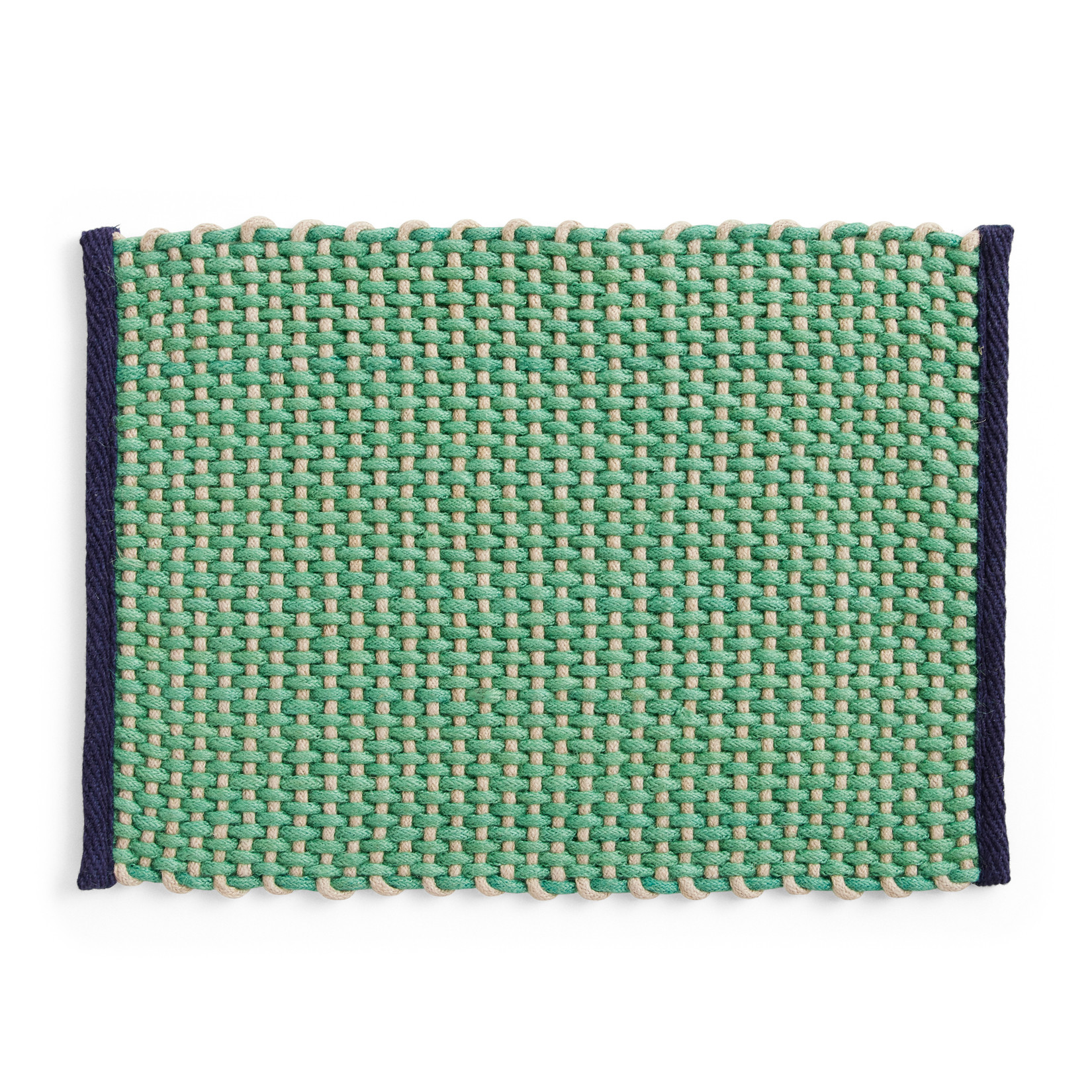 Prostokątna wycieraczka utkana z czystej juty o dwukolorowym wzorze. Wyposażona w kontrastowe, wełniane wykończenia po obu końcach. Dostępna w różnych opcjach kolorystycznych do tego certyfikowana OEKO-TEX® co znaczy, iż produkt spełnia wymogi humanoekologiczne jak również, że został przebadany pod kątem substancji szkodliwych.