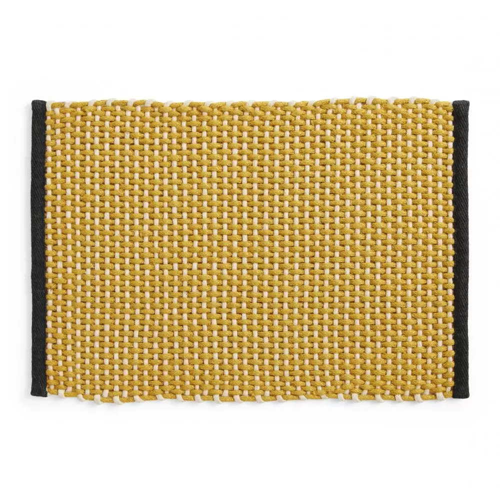 Prostokątna wycieraczka utkana z czystej juty o dwukolorowym wzorze. Wyposażona w kontrastowe, wełniane wykończenia po obu końcach. Dostępna w różnych opcjach kolorystycznych do tego certyfikowana OEKO-TEX® co znaczy, iż produkt spełnia wymogi humanoekologiczne jak również, że został przebadany pod kątem substancji szkodliwych.
