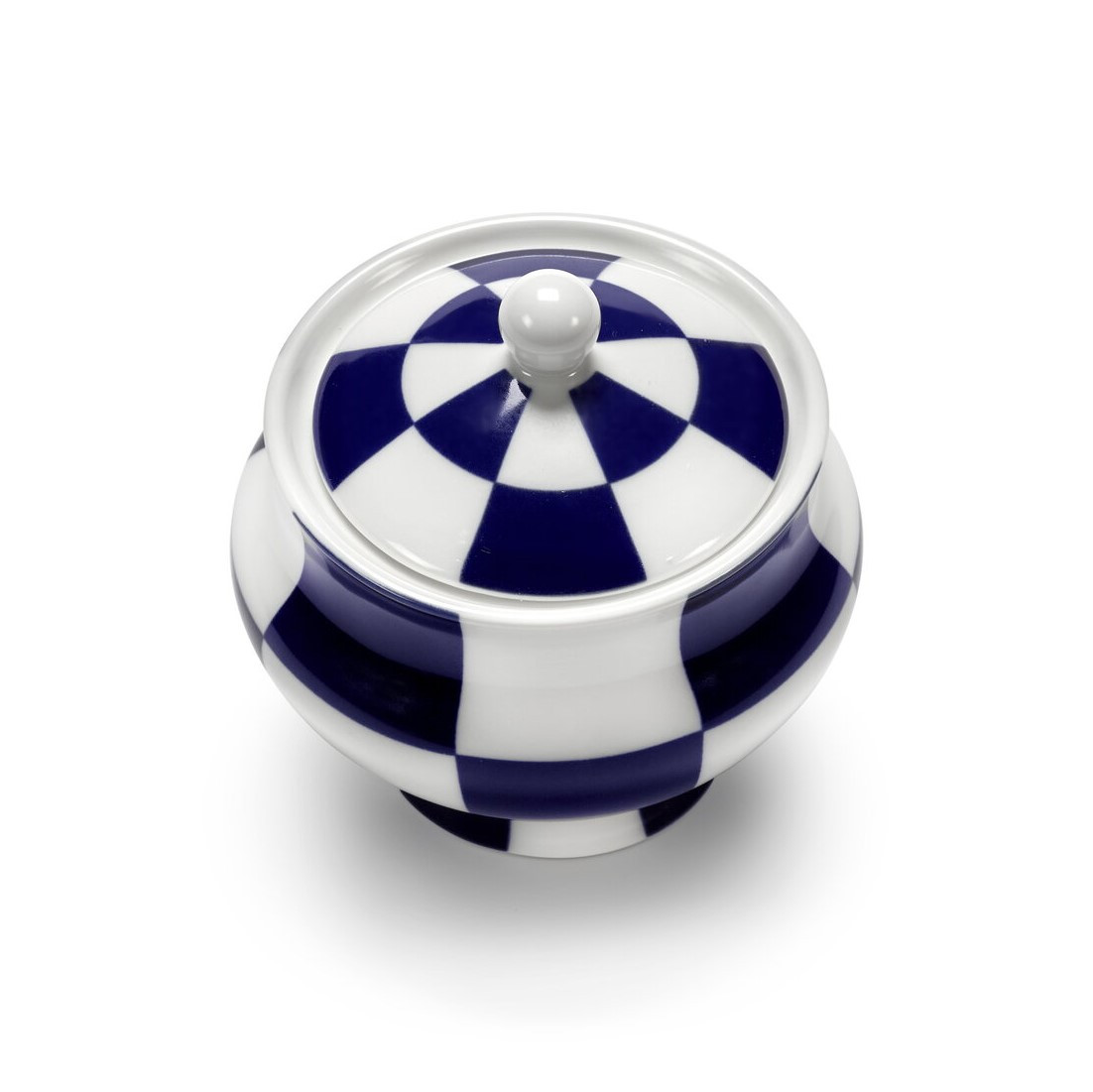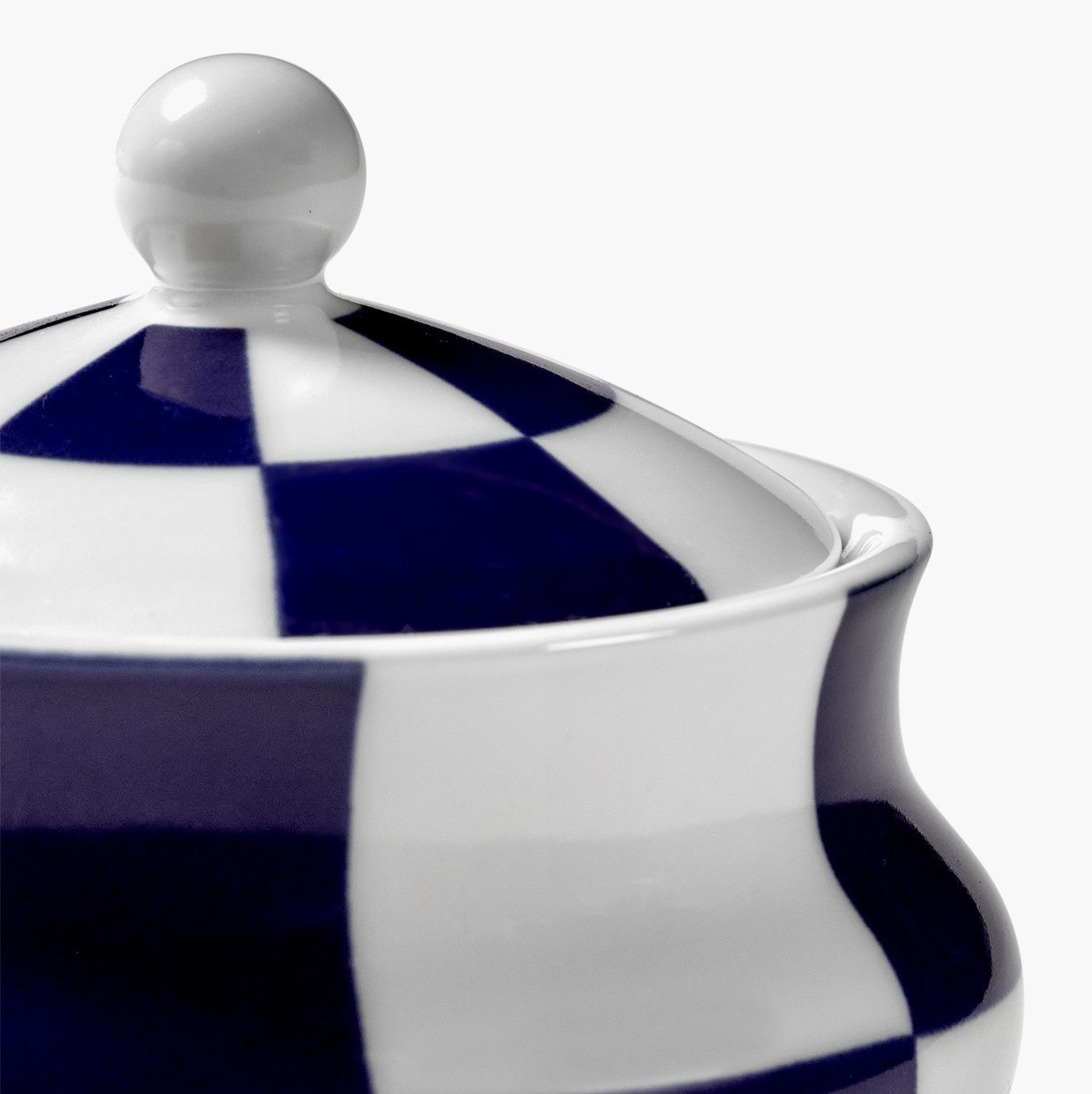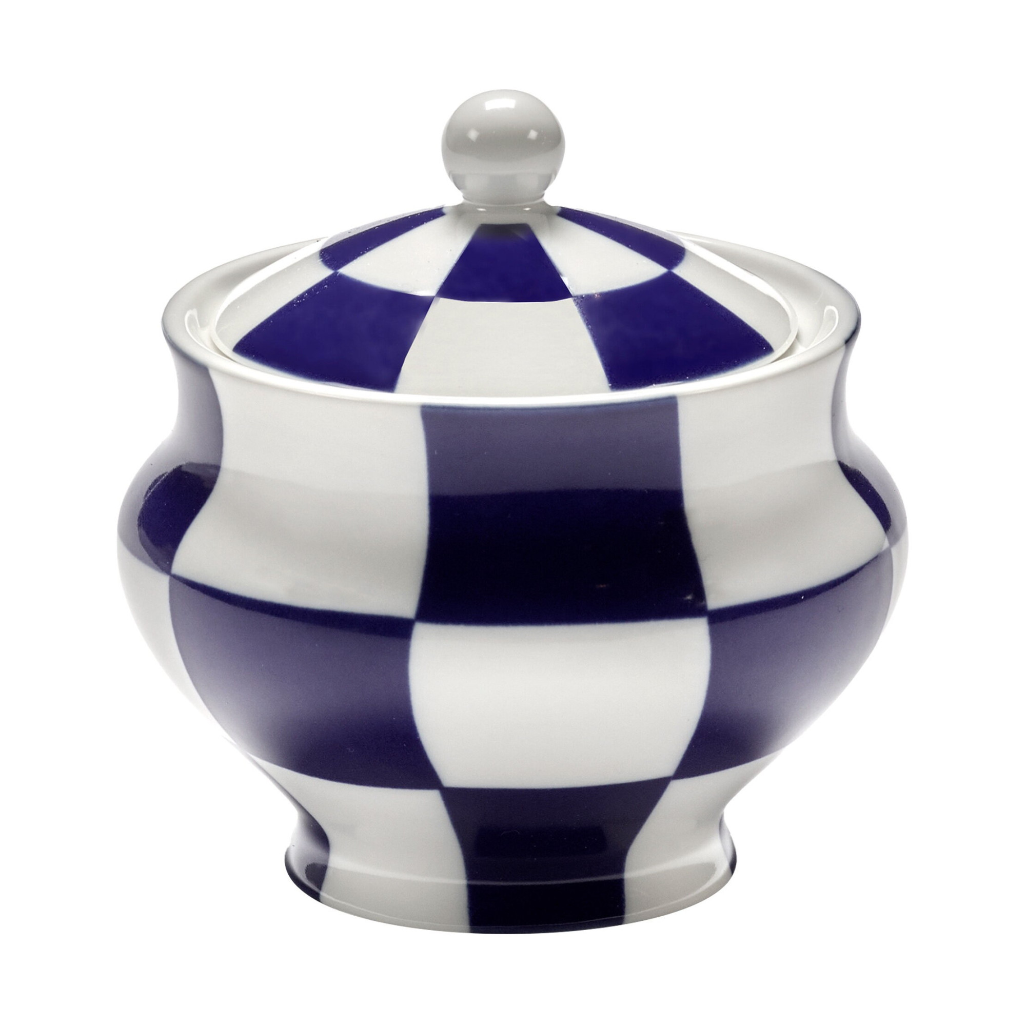 Cukiernica Serax Fête des Bêtes to porcelanowy element zastawy stołowej o surrealistycznym, artystycznym charakterze. Ozdobiona charakterystycznym niebiesko-białym wzorem w kratę, stanowi odważny akcent dekoracyjny na stole, łącząc funkcję użytkową z designem premium.