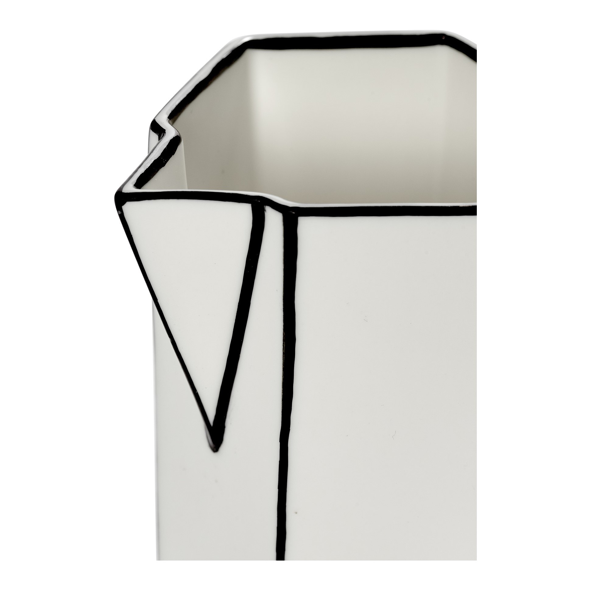 Mlecznik z kolekcji Carte Blanche belgijskiej marki Serax to wyjątkowy element codziennej zastawy, który łączy nowoczesny minimalizm z artystyczną swobodą. Inspirowany ręcznie ciętym kartonem, projekt zachwyca nieregularnymi liniami i naiwnymi konturami, nadając porcelanie lekko szkicowy, kreatywny charakter.