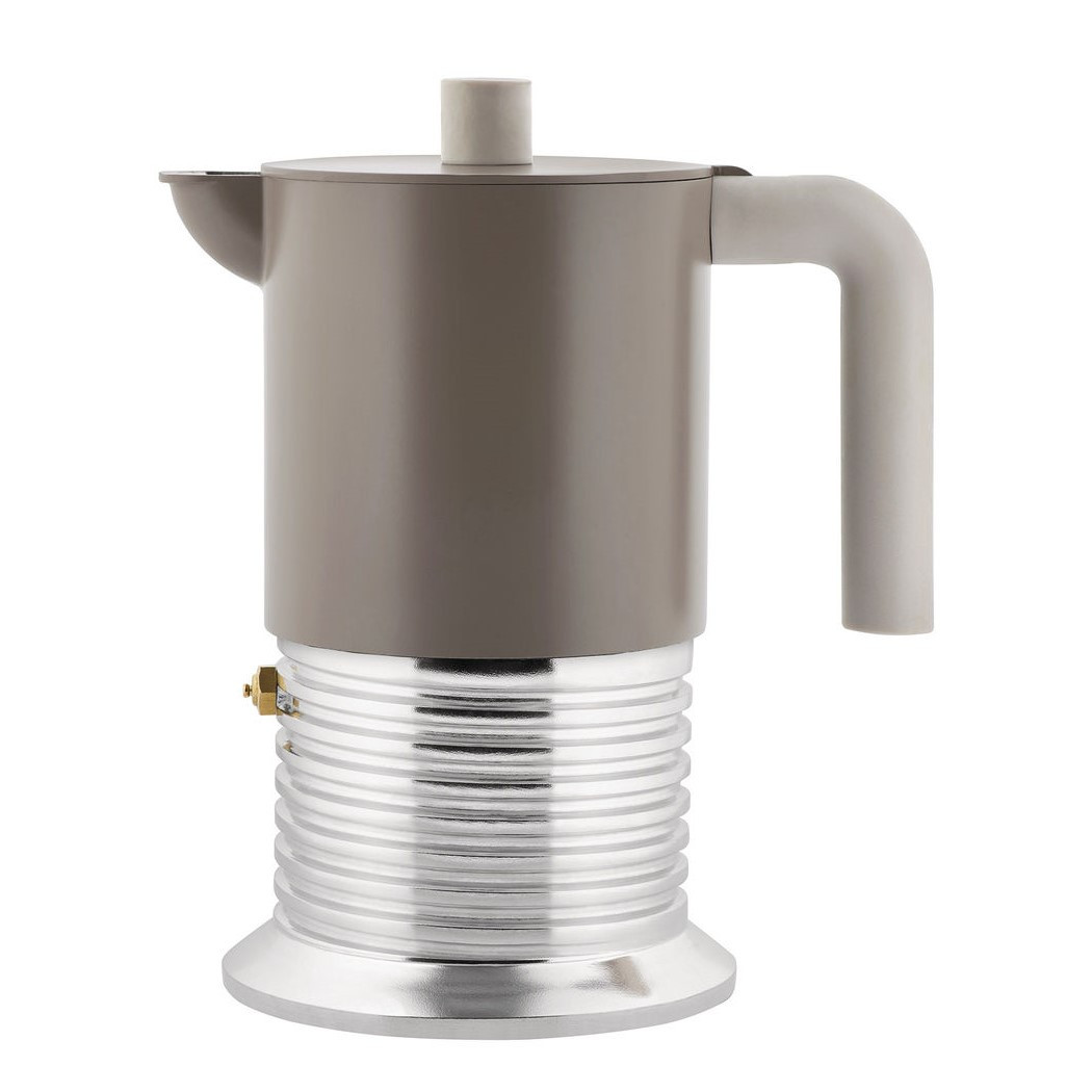 Vite to nowoczesna kawiarka na kuchenkę o industrialnym charakterze. Projekt opiera się na reinterpretacji prostych form przemysłowych, co nadaje mu wyrazisty, rzeźbiarski wygląd. Korpus wykonany z odlewanego aluminium zapewnia trwałość i stabilne parzenie espresso o intensywnym smaku. Kontrastujące, kolorowe elementy uchwytu i pokrywy podkreślają nowoczesny, warsztatowy charakter projektu.