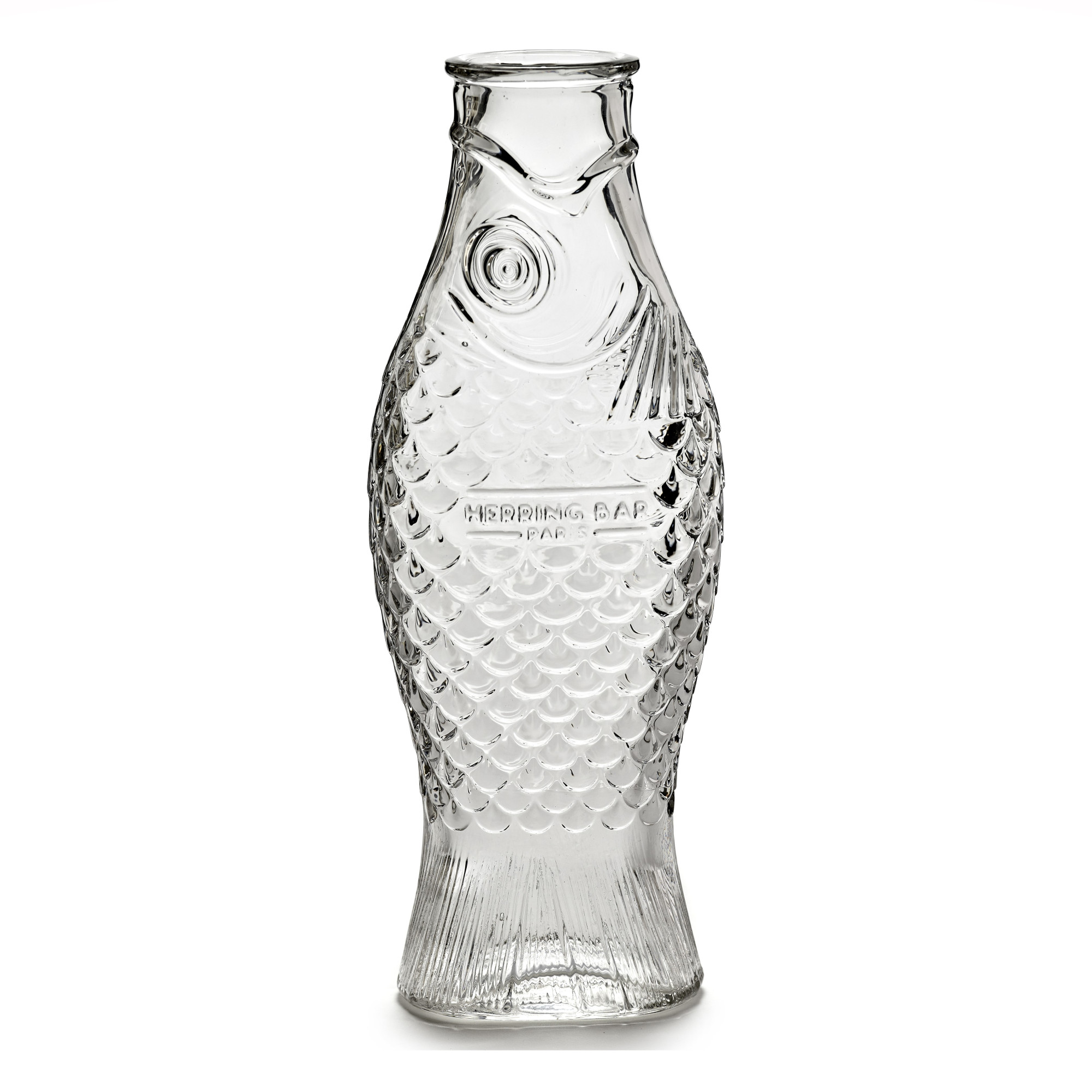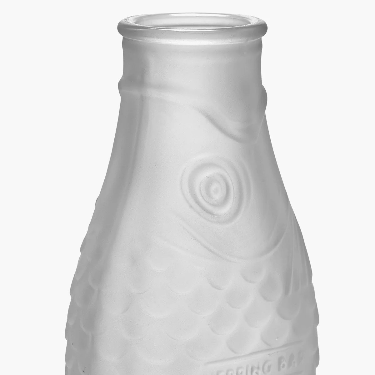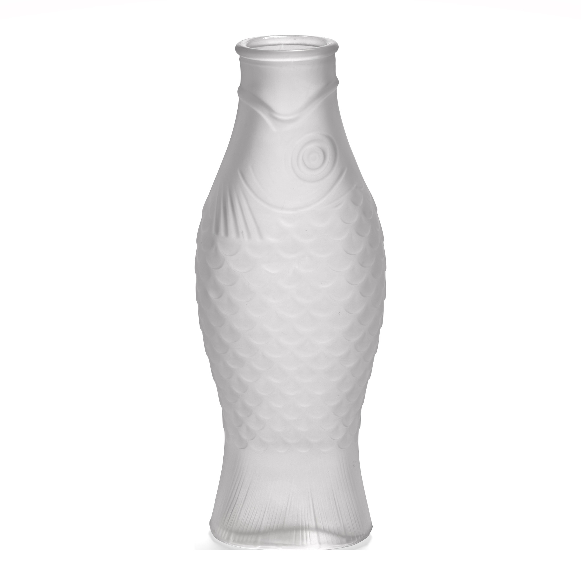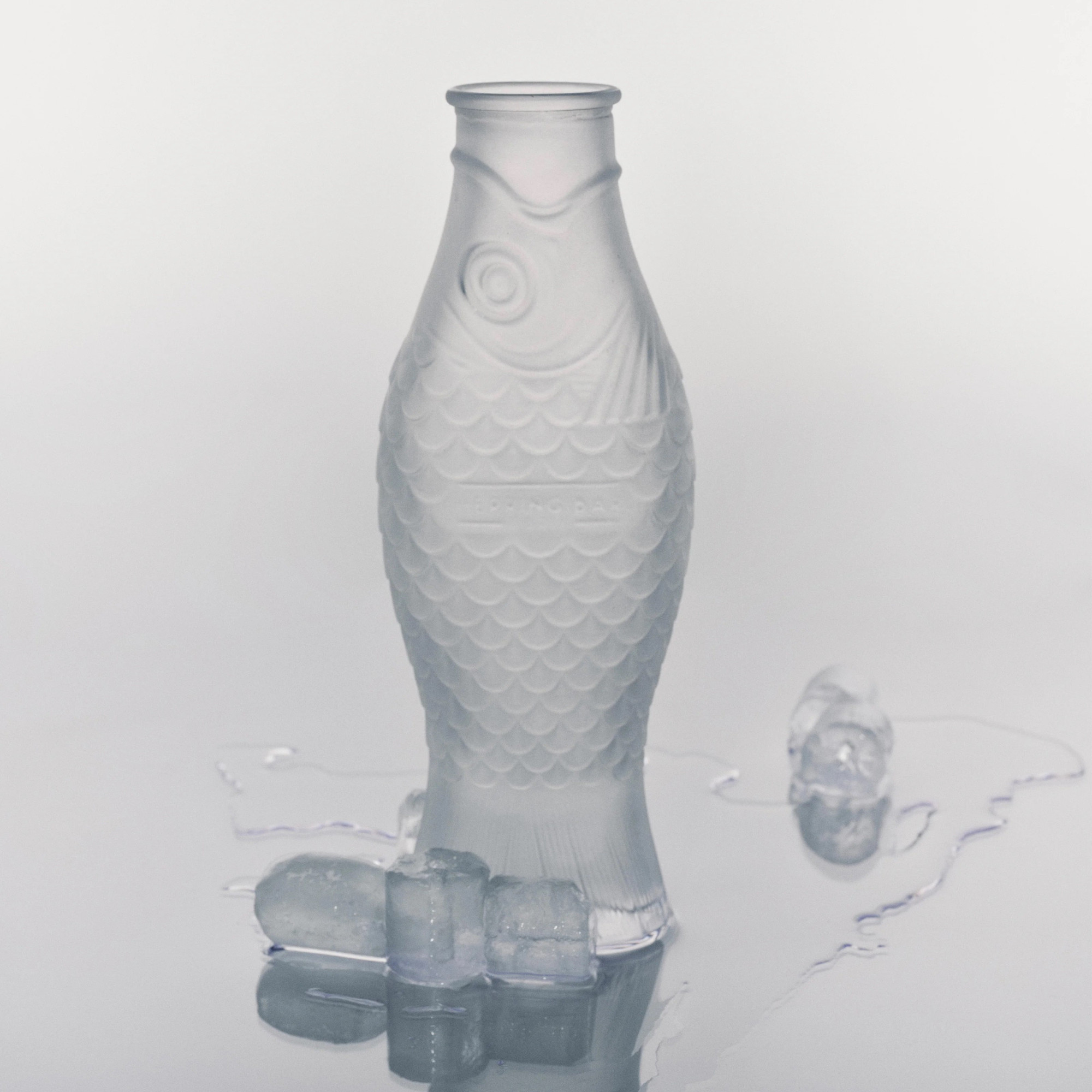 Karafka Fish & Fish w matowej, mlecznobiałej wersji to prawdziwy majstersztyk designu użytkowego. Jej delikatnie mrożone wykończenie podkreśla zabawną, rybią formę, łącząc elegancję z funkcjonalnością. Idealna jako karafka szklana do wody, pięknie uzupełnia inne elementy kolekcji Fish & Fish, wprowadzając odrobinę artystycznego sznytu na stół.