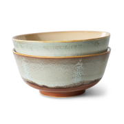 Wprowadź do swojej jadalni nieszablonowy styl retro, dzięki ceramicznym miskom do ramenu z kolekcji 70s holenderskiej marki HKliving. Ta multikolorowa seria designerskich naczyń stylizowana jest modnym stylem z lat 70., a każda z mis wykonywana jest ręcznie z wysokiej jakości ceramiki do tego zdobiony w unikatowy wzór.