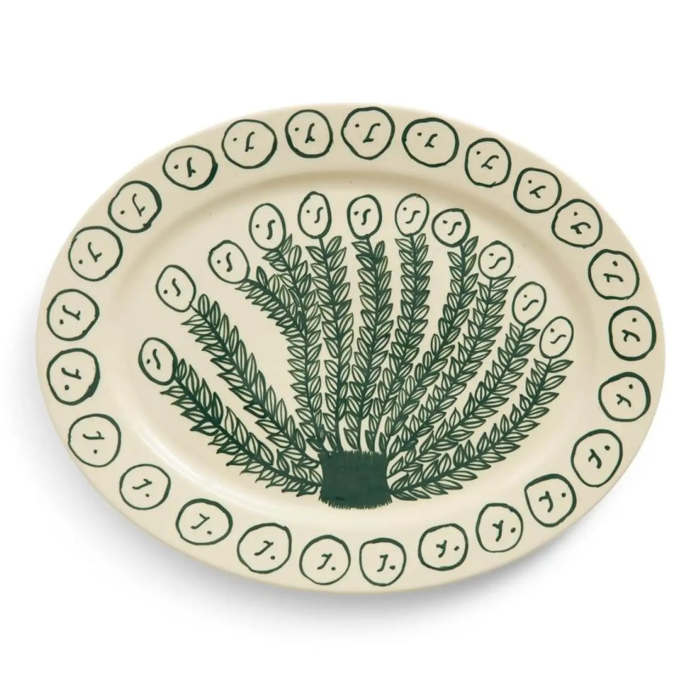 Każdy egzemplarz jest ręcznie malowany, dlatego stanowi jedyną w swoim rodzaju kompozycję. Model Olive Grove zachwyca malarską paletą w odcieniach zieleni na kremowym tle przywodząc na myśl pejzaż śródziemnomorskiego gaju oliwnego. Długość 36 cm sprawia, że idealnie nadaje się do serwowania sałatek, owoców lub wypieków, a także jako dekoracyjny element wnętrza.