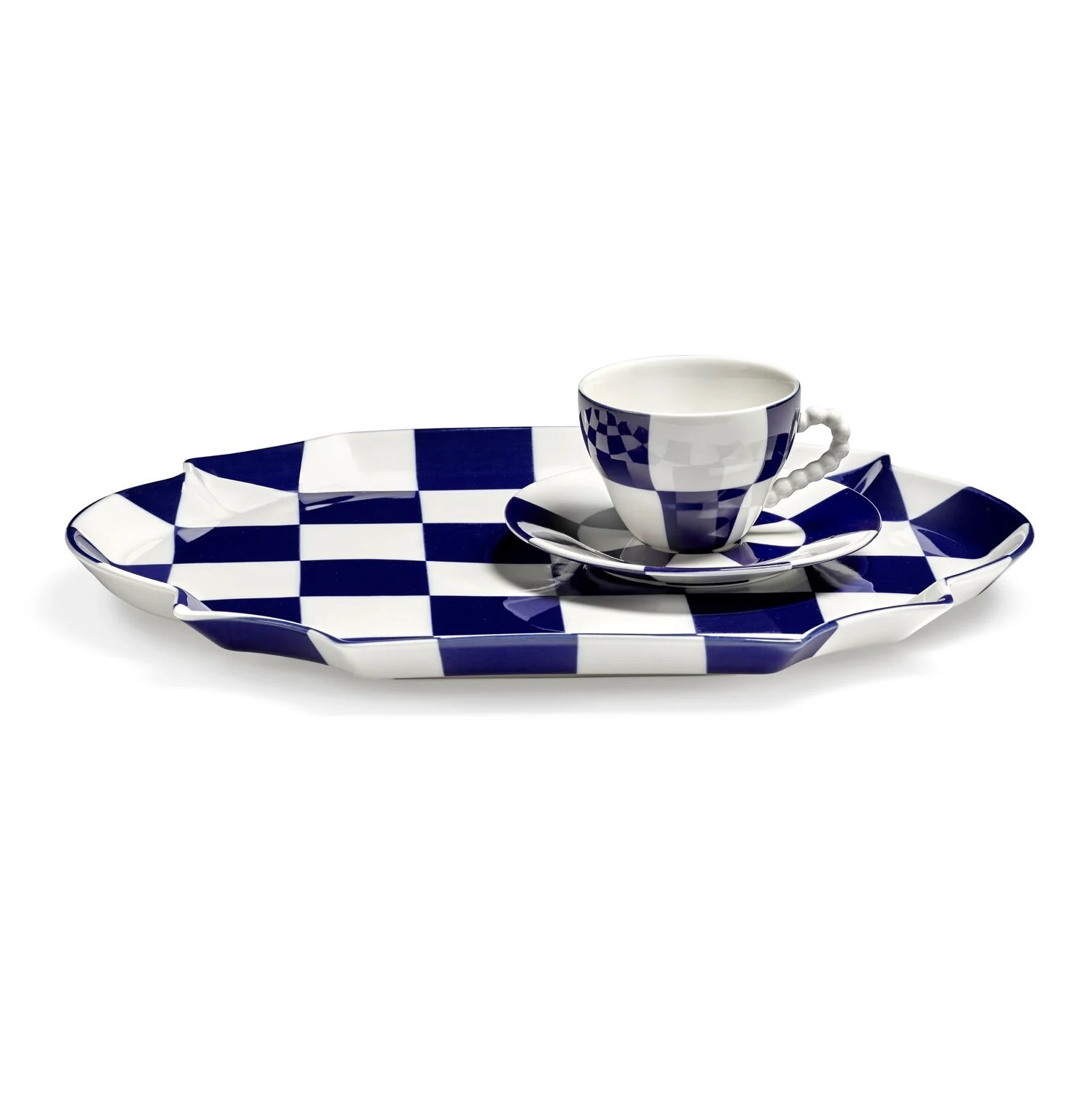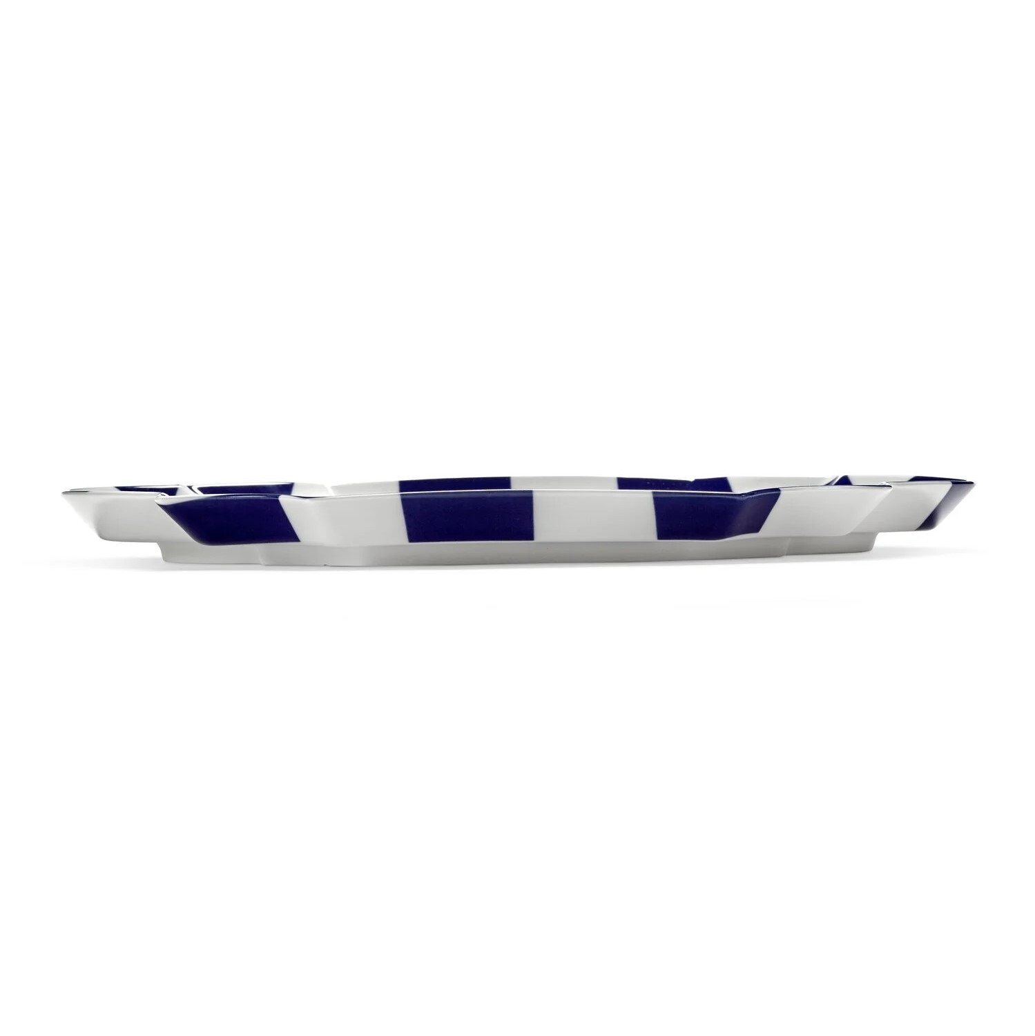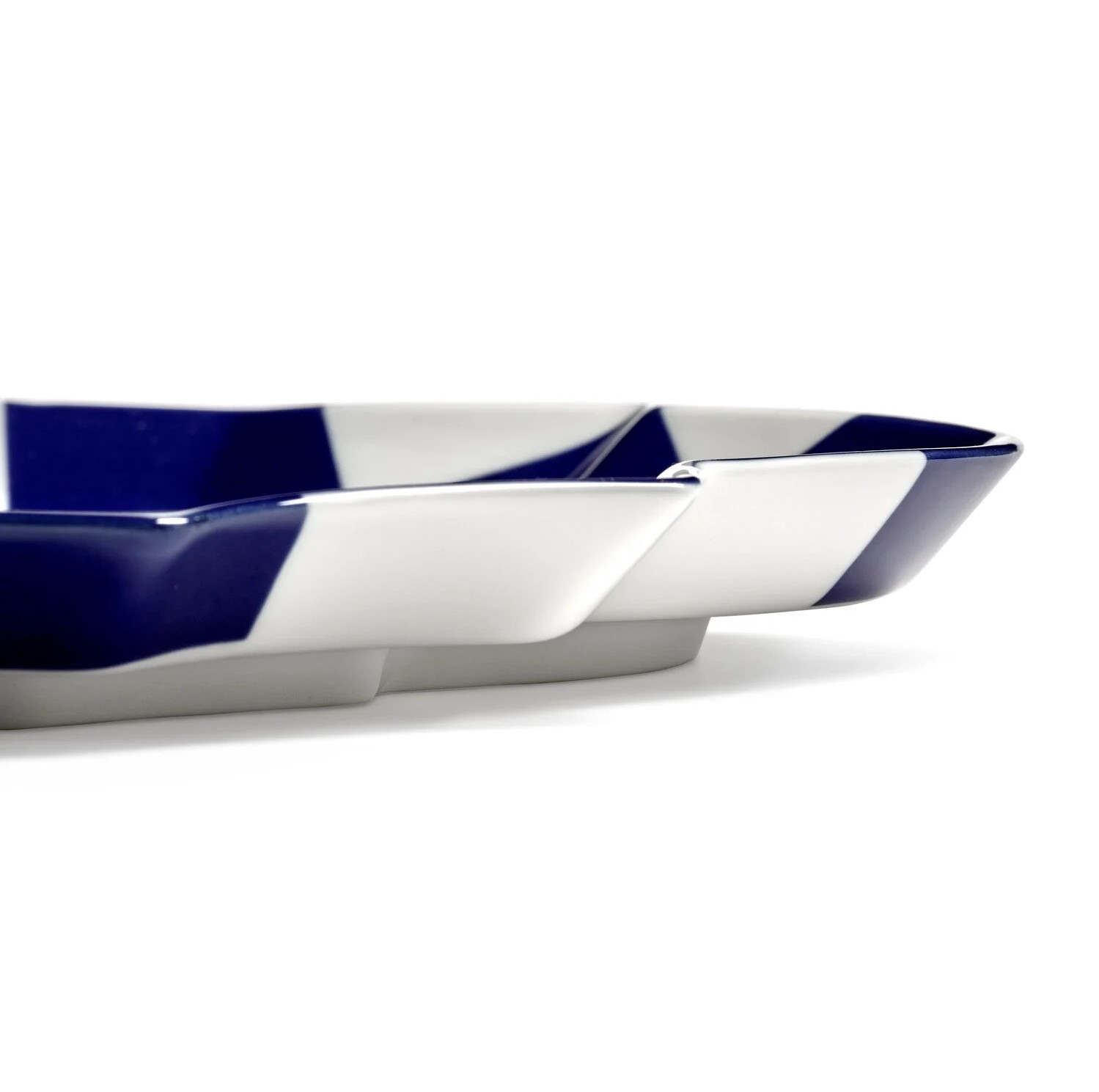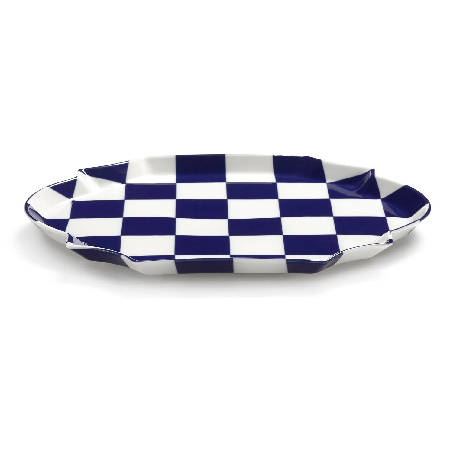 Owalny talerz Serax Fête des Bêtes Les Objets Mouleversants to porcelanowy element zastawy stołowej o wyjątkowym, surrealistycznym charakterze. Charakterystyczny niebiesko-biały wzór nadaje mu odważny, artystyczny styl, dzięki czemu pełni zarówno funkcję użytkową, jak i dekoracyjną w aranżacji stołu.