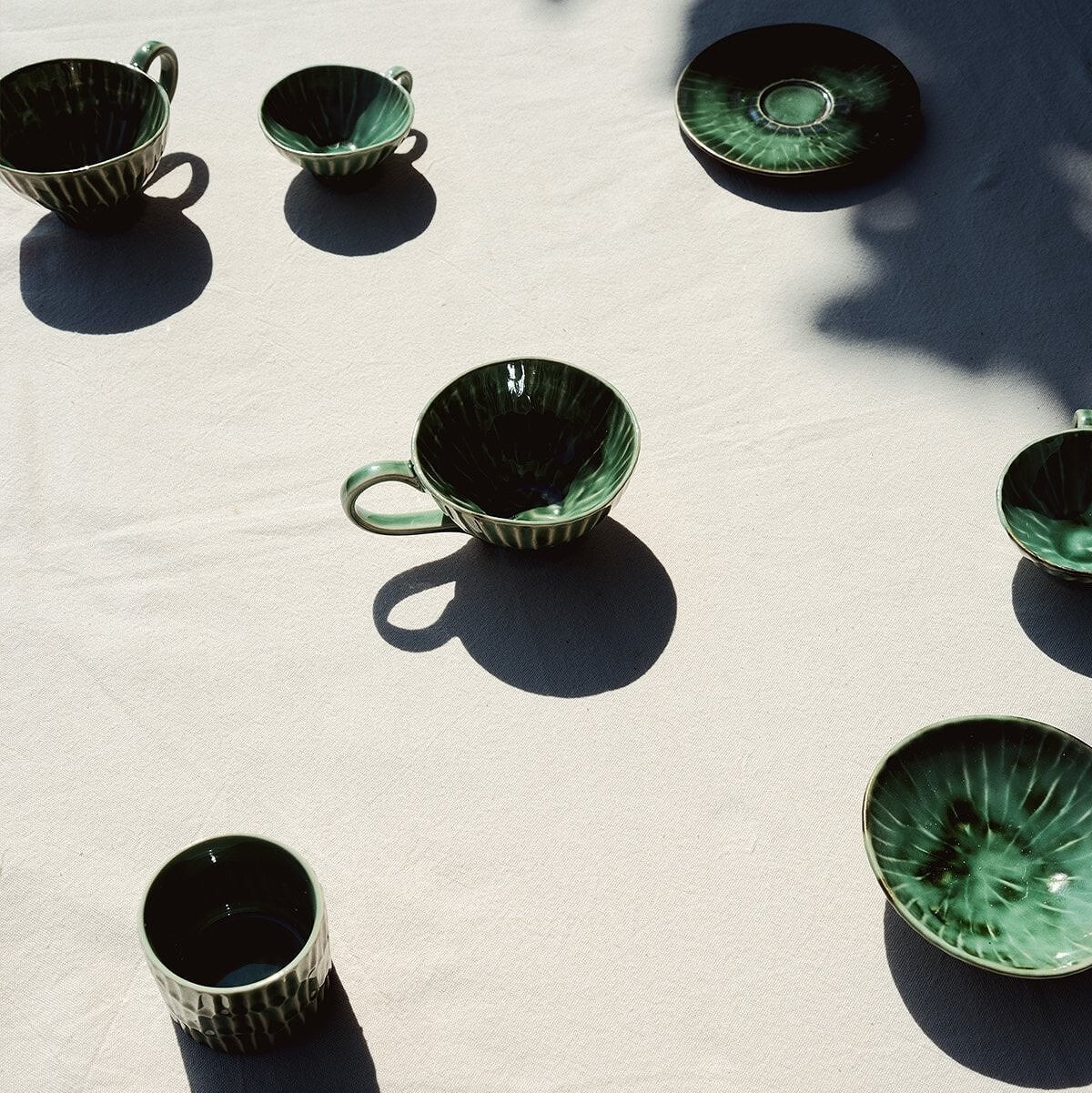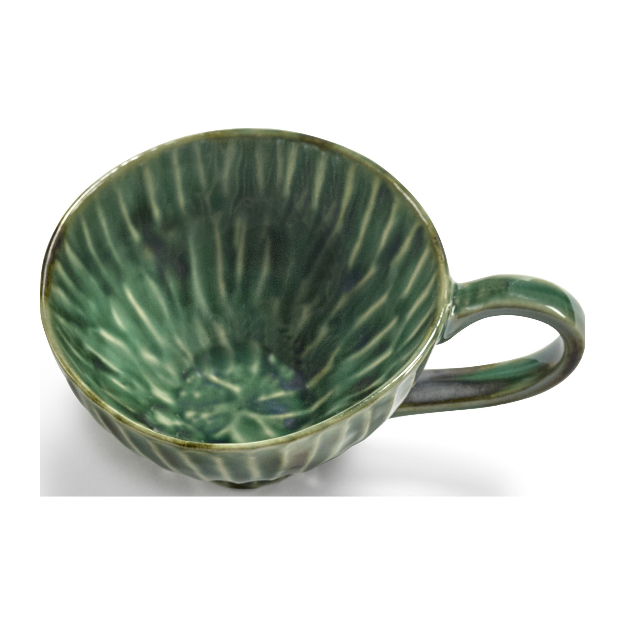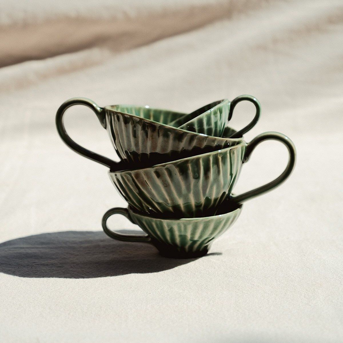 Zestaw 2 filiżanek z kolekcji Verde Lanza belgijskiej marki Serax, inspirowanej kontrastem między soczystą zielenią natury a surowym, wulkanicznym krajobrazem Lanzarote. Ta wyjątkowa linia łączy organiczne piękno natury z rzemieślniczym podejściem do formy, tworząc zastawę o niepowtarzalnym charakterze. Zielone szkliwo o subtelnym, „sun-worn” wykończeniu nadaje filiżance naturalnej głębi i sprawia, że każda kawa staje się estetycznym doświadczeniem.