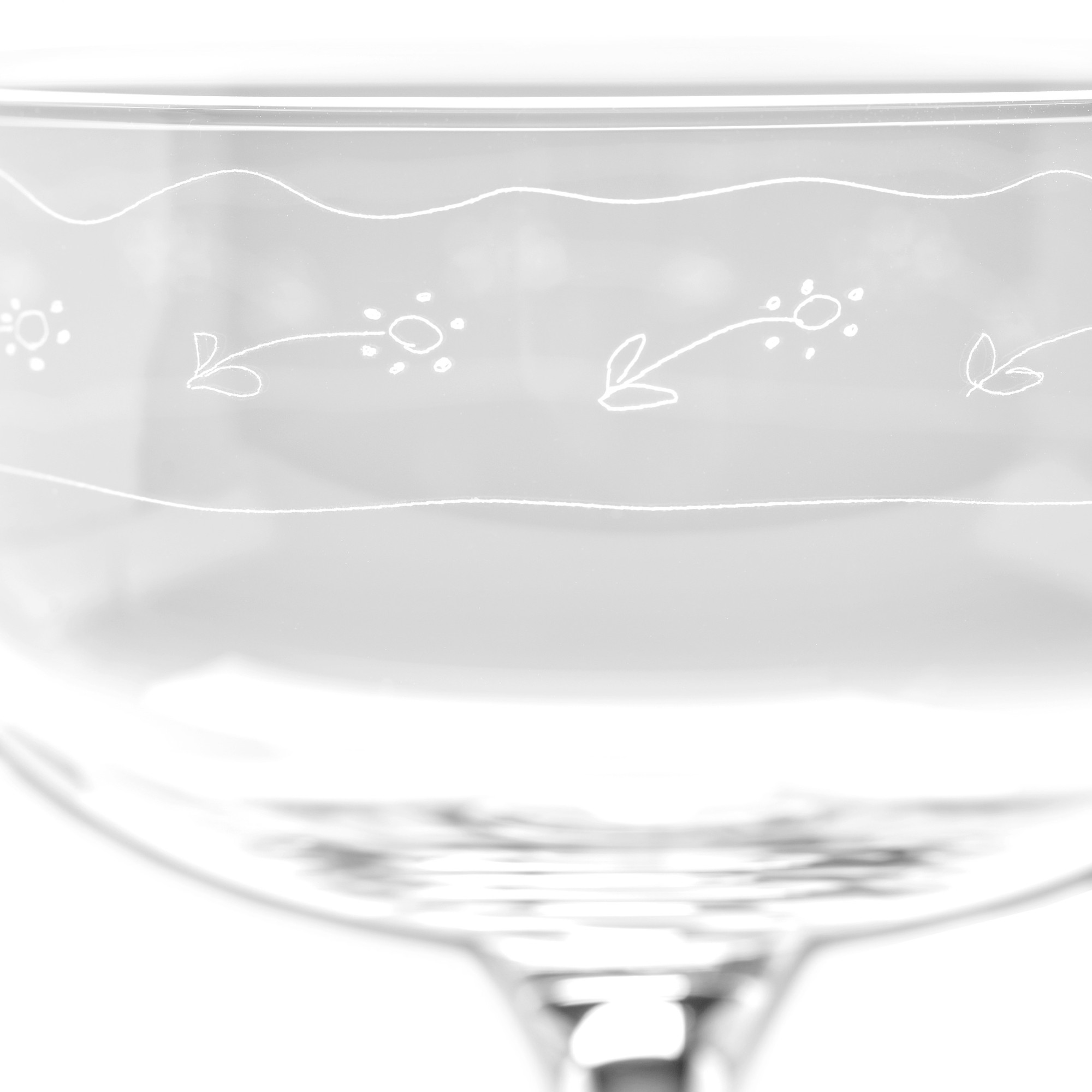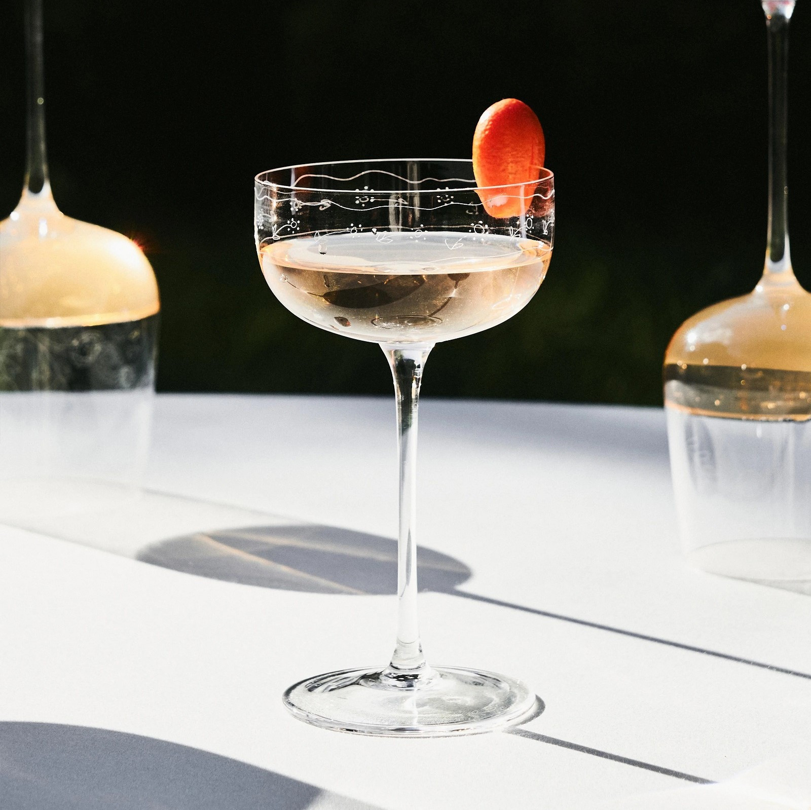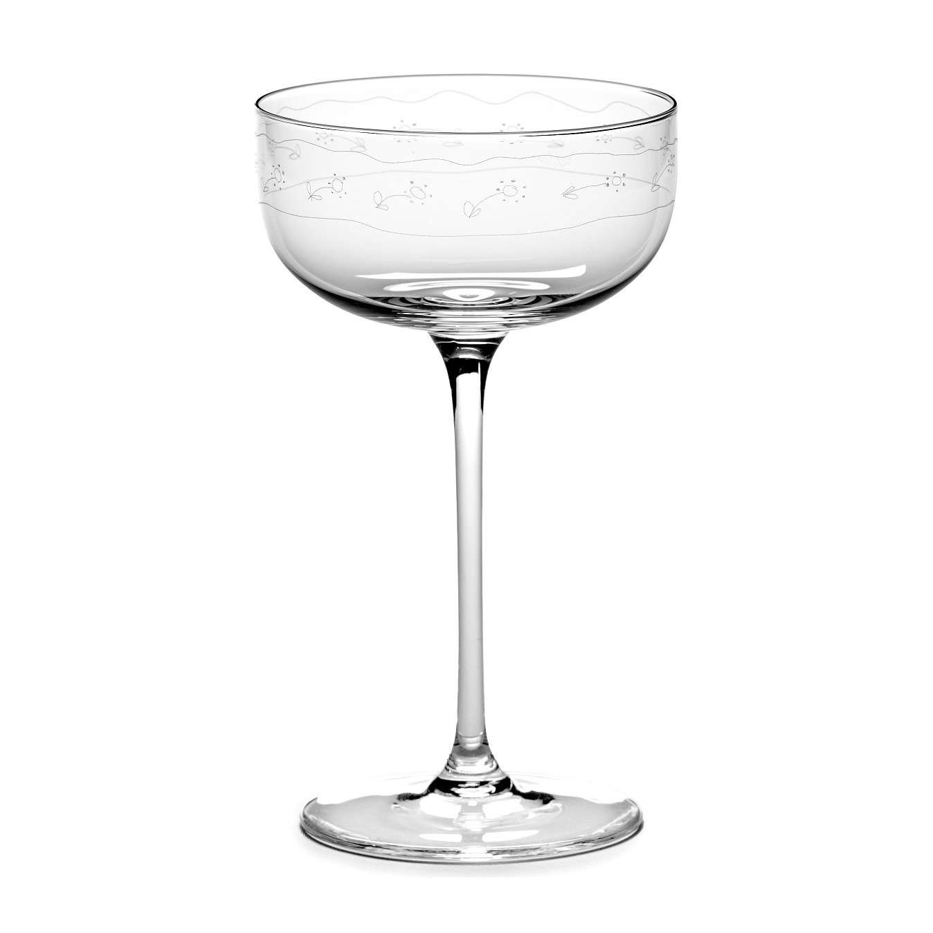 Kieliszek do szampana z kolekcji Midnight Flowers marki Serax, zaprojektowany przez Marni, to wyrazisty przykład artystycznego designu inspirowanego naturą i wakacyjną swobodą. Delikatne, ręcznie grawerowane motywy kwiatowe nadają mu dekoracyjny, niepowtarzalny charakter i podkreślają piękno rzemieślniczych niedoskonałości.