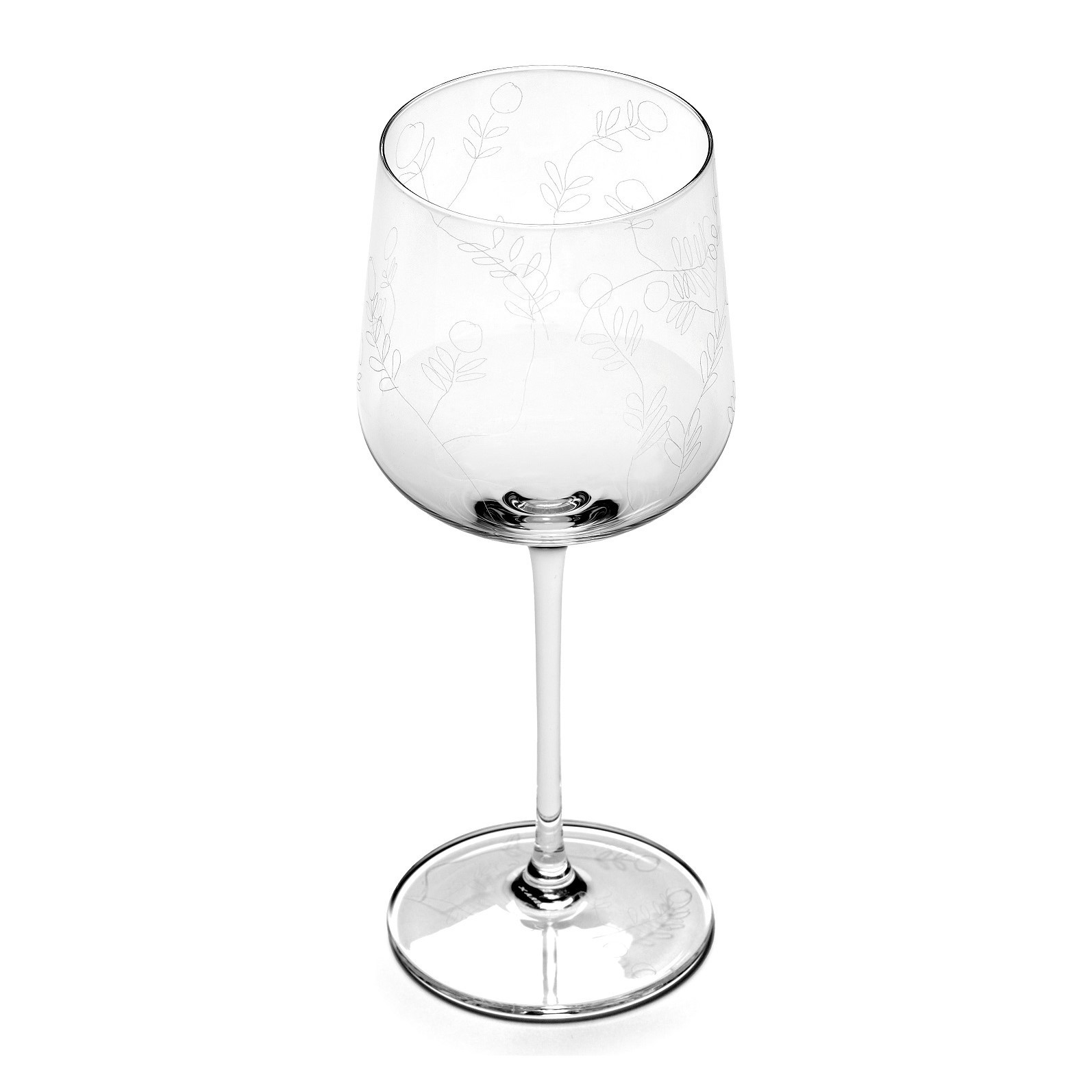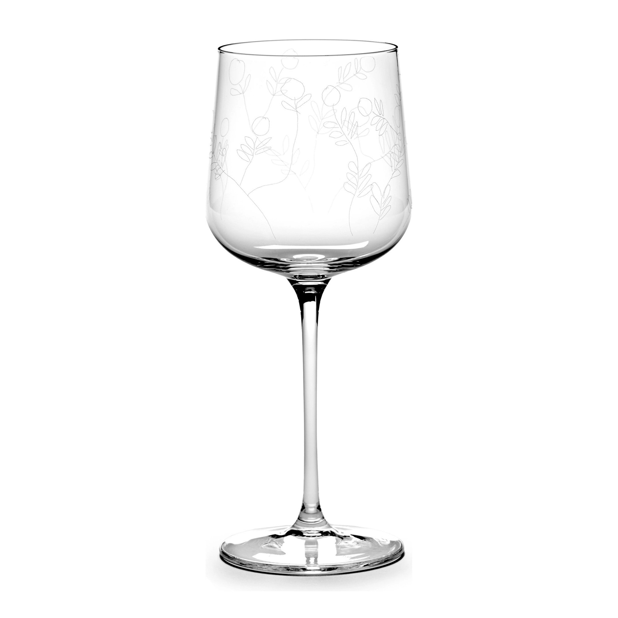 Kieliszek do białego wina z kolekcji Midnight Flowers belgijskiej marki Serax, zaprojektowany przez Marni, to wyrazisty przykład artystycznego designu inspirowanego naturą i wakacyjną swobodą. Delikatne, ręcznie grawerowane motywy kwiatowe nadają mu dekoracyjny, niepowtarzalny charakter i podkreślają piękno rzemieślniczych niedoskonałości.