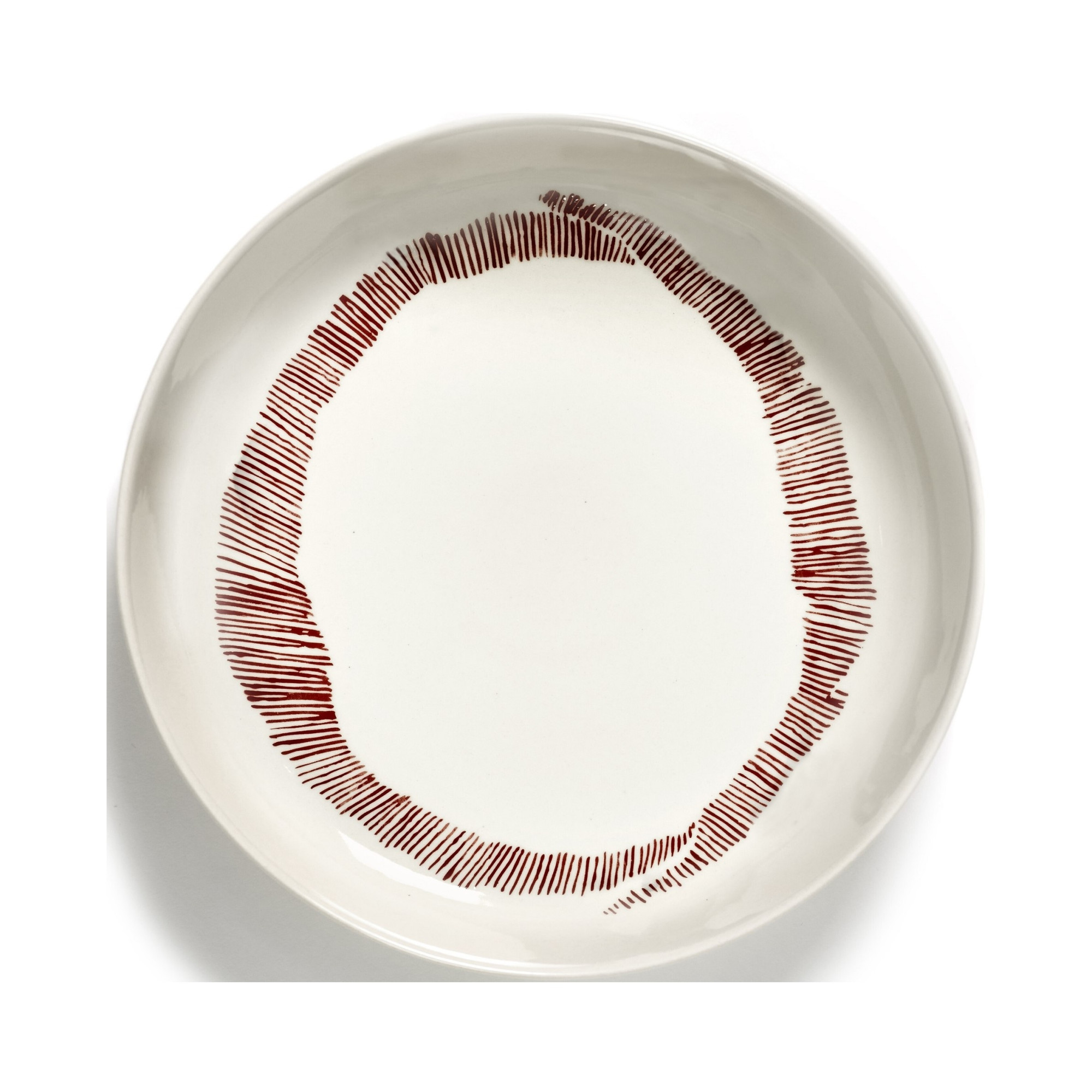 Talerz głęboki z kolecji Feast belgijskiej marki Serax. Wyrazisty element zastawy, który łączy intensywny kolor z artystyczną swobodą formy. Ciepły odcień bieli zestawiony z organicznymi, ręcznie malowanymi pociągnięciami pędzla nadaje każdej aranżacji stołu lekkość i energię. To esencja kolekcji stworzonej we współpracy z Yotam Ottolenghi – pełnej koloru, ekspresji i nieoczywistych zestawień.