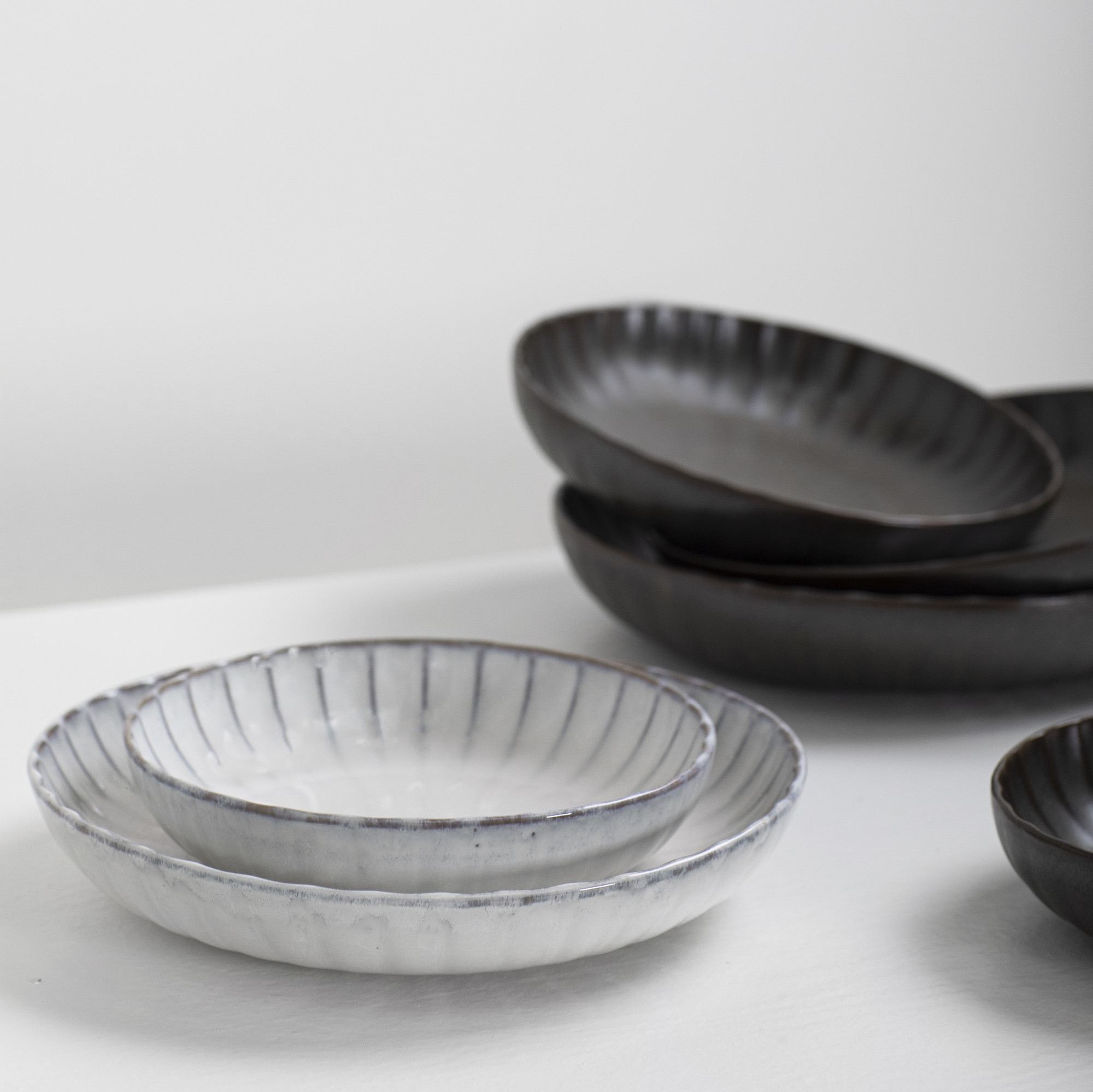 Talerz głęboki z kolekcji Inku autorstwa Sergio Hermana dla marki Serax to połączenie rzemiosła, natury i nowoczesnej elegancji. Inspirowany muszlami, kwiatami oraz abstrakcyjnymi strukturami przyrody, zachwyca subtelną formą i ponadczasowym minimalizmem. Wykonany z wysokiej jakości kamionki (stoneware), pokryty szkliwem, idealnie sprawdzi się zarówno na co dzień, jak i w eleganckiej aranżacji stołu.