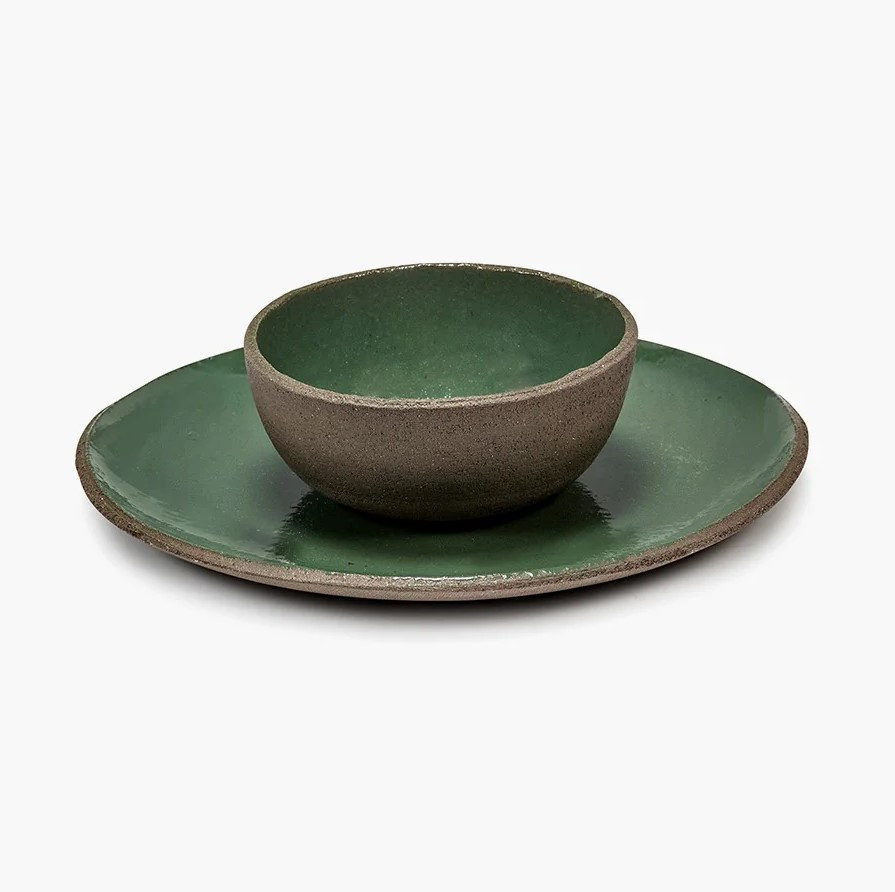 Talerz obiadowy FCK od Serax to propozycja dla miłośników minimalizmu w nowoczesnym wydaniu. Wykonany z kamionki z dodatkiem cementu, zachwyca trwałością i przyjemną w dotyku powierzchnią, wykończoną subtelnym zielonym szkliwem inspirowanym Bauhausem. Każdy egzemplarz jest ręcznie wykańczany, więc drobne nieregularności są naturalnym elementem i podkreślają unikatowy charakter talerza.