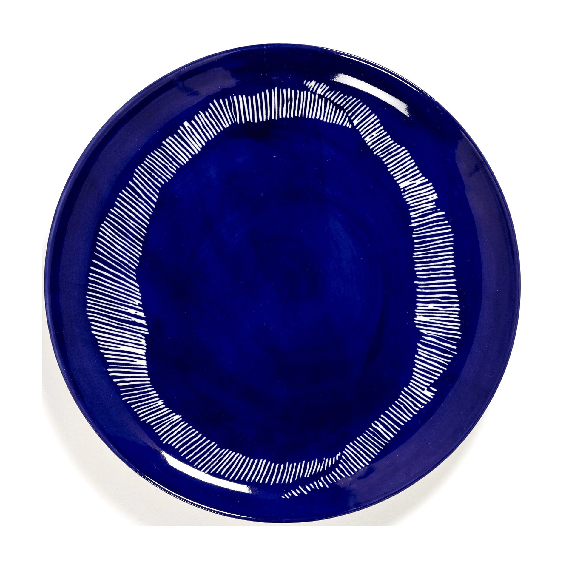Talerz obiadowy z kolecji Feast belgijskiej marki Serax. Wyrazisty element zastawy, który łączy intensywny kolor z artystyczną swobodą formy. Głęboki odcień ultramaryny zestawiony z organicznymi, ręcznie malowanymi pociągnięciami pędzla nadaje każdej aranżacji stołu lekkość i energię. To esencja kolekcji stworzonej we współpracy z Yotam Ottolenghi – pełnej koloru, ekspresji i nieoczywistych zestawień.
