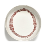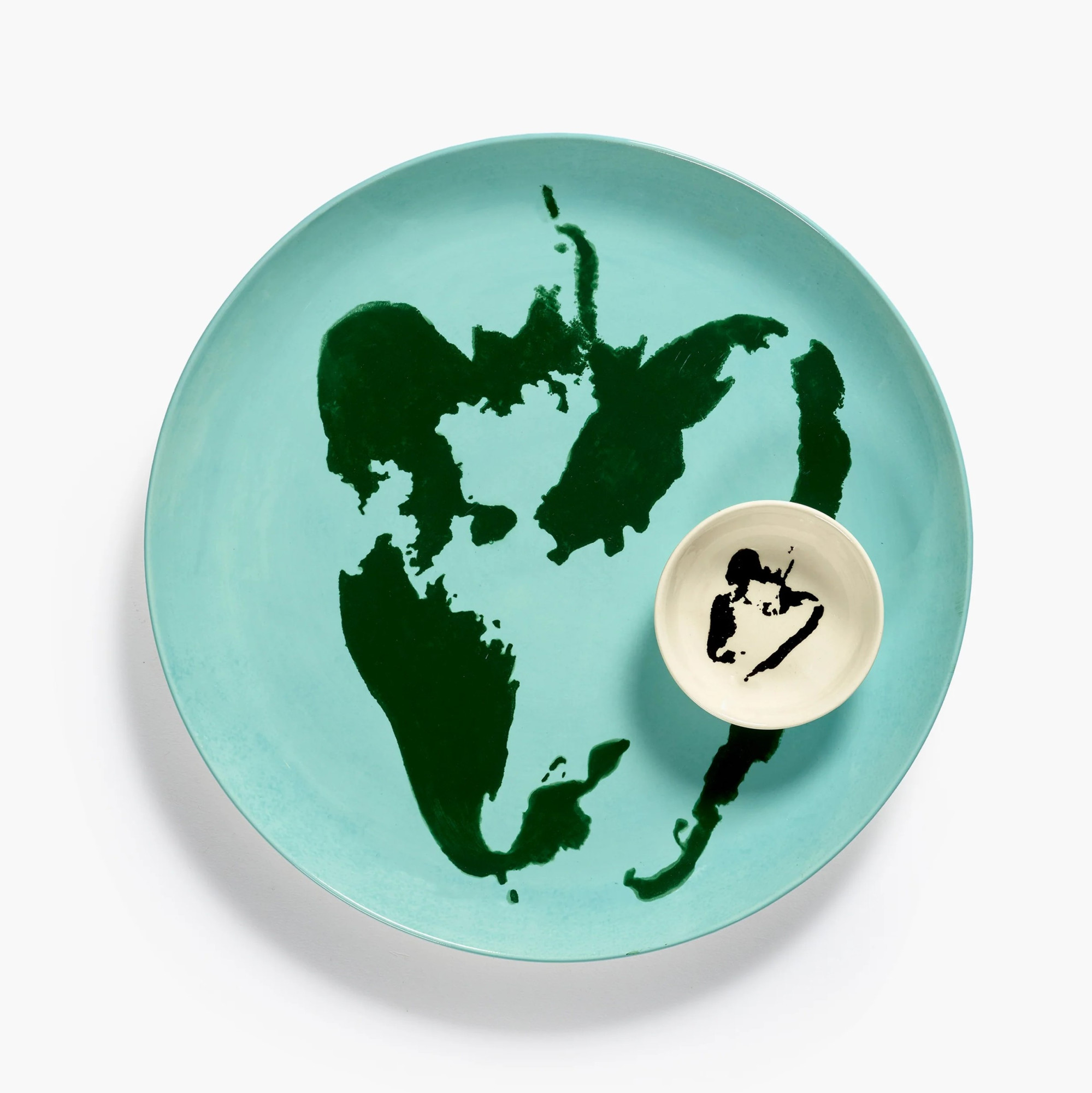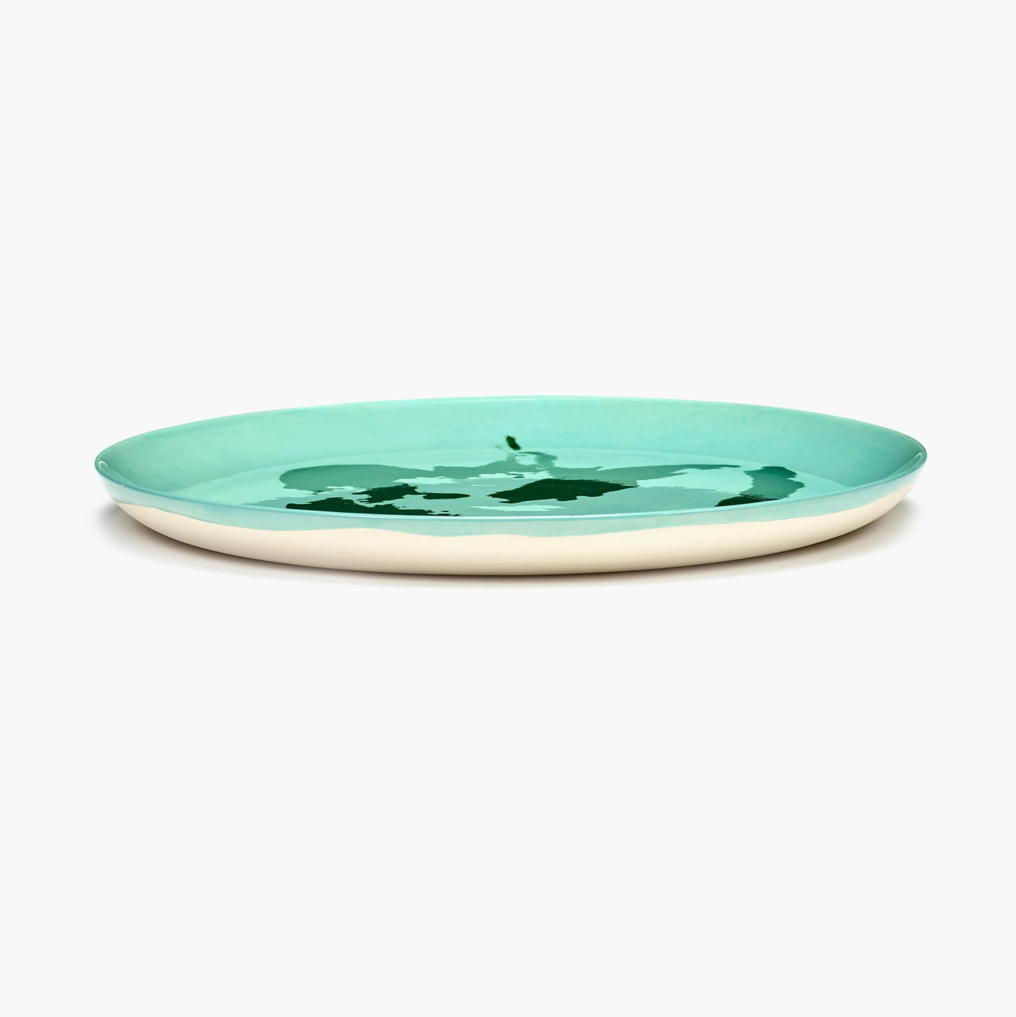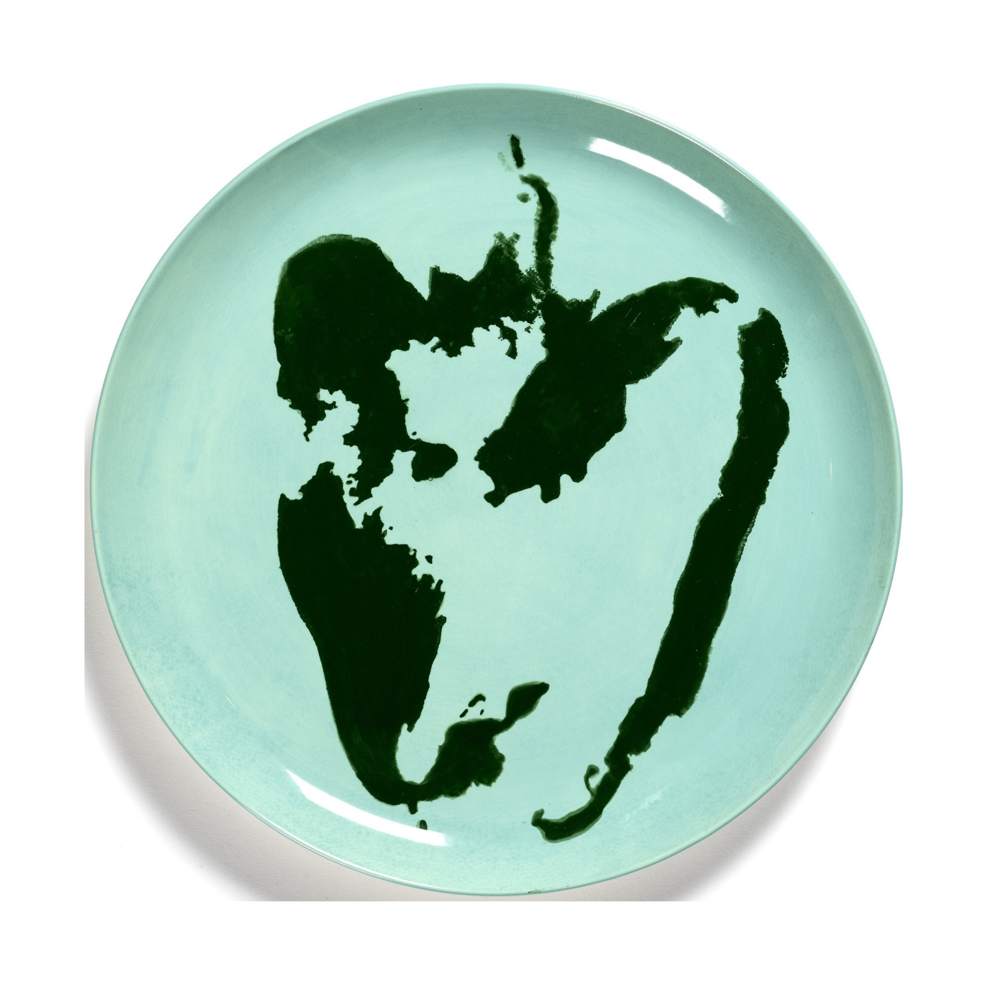 Talerz obiadowy z kolekcji Feast marki Serax to wyrazisty element zastawy, który łączy intensywny kolor z artystyczną swobodą formy. Ciepły, złamany odcień bieli zestawiony z niebieskimi, ręcznie malowanymi pociągnięciami pędzla nadaje każdej aranżacji stołu lekkość, świeżość i subtelną energię. To esencja kolekcji stworzonej we współpracy z Yotam Ottolenghi – pełnej koloru, ekspresji i nieoczywistych zestawień.