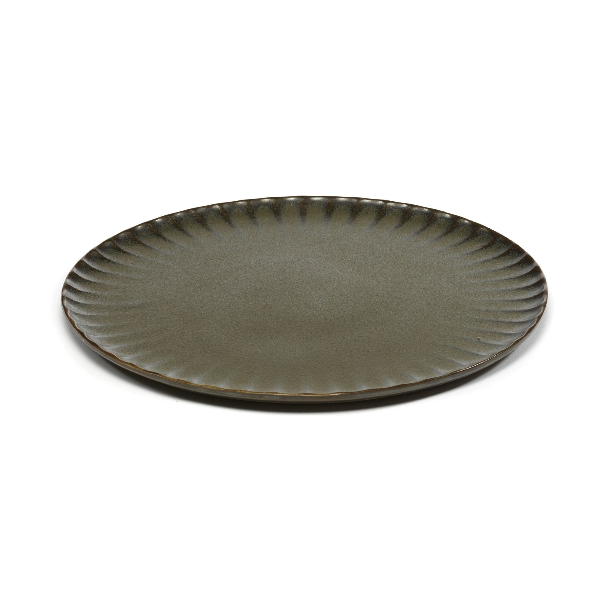 Talerz obiadowy z kolekcji Inku belgijskiej, renomowanej marki Serax to wyrafinowane połączenie rzemiosła, inspiracji naturą i nowoczesnego designu klasy premium. Organiczna forma naczynia nawiązuje do muszli, kwiatów oraz abstrakcyjnych struktur przyrody, a głęboki zielony kolor szkliwa podkreśla jego naturalny, elegancki charakter i doskonale komponuje się z nowoczesną oraz klasyczną zastawą stołową.