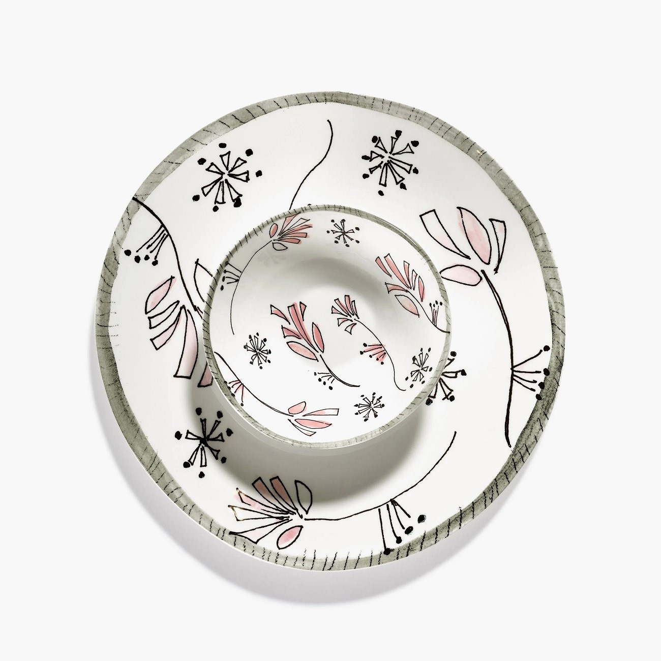 Talerz obiadowy z kolekcji Midnight Flowers marki Serax, zaprojektowany przez Marni, to połączenie artystycznej ekspresji z codzienną funkcjonalnością. Dekorowany bogatym motywem dzikich anemonów, inspirowanym botanicznymi ilustracjami, wnosi na stół wyrafinowaną elegancję i wyrazisty akcent kolorystyczny.