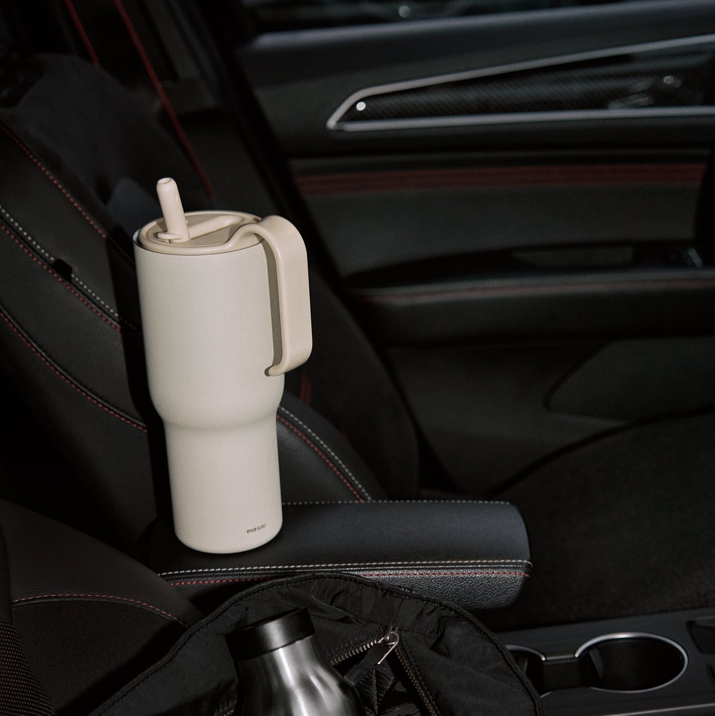 Ergonomiczny uchwyt oraz wygodna słomka wbudowana w pokrywę sprawiają, że korzystanie z kubka jest wyjątkowo komfortowe – także jedną ręką. Obracana konstrukcja pozwala dopasować ustawienie do użytkownika prawo- lub leworęcznego. Smukła podstawa pasuje do większości uchwytów samochodowych, co czyni go idealnym towarzyszem w podróży, pracy i na treningu.