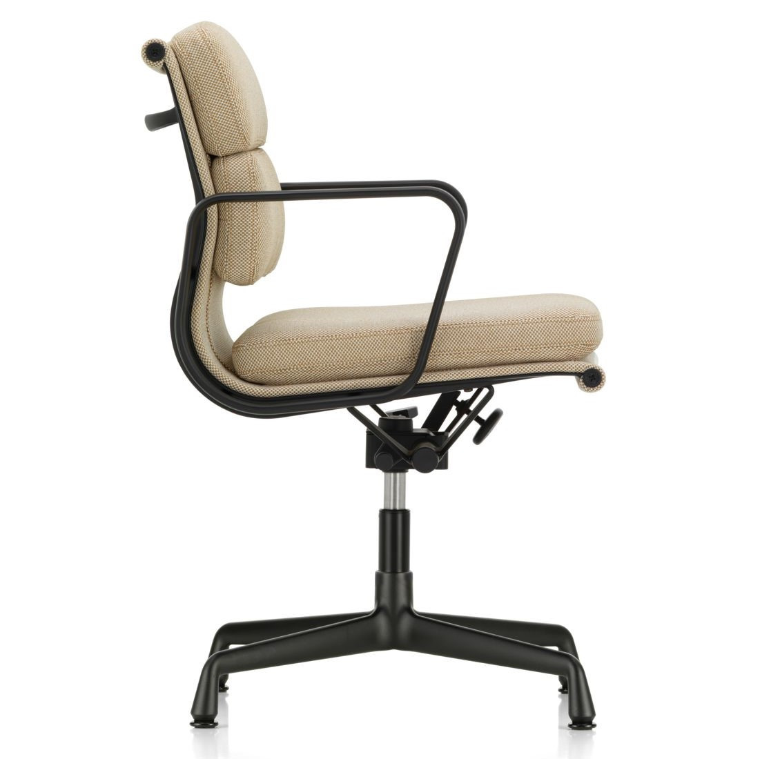Model Eames Soft Pad Chair EA 231 dostępny jest w wielu wariantach wykończenia – możesz wybrać kolor podstawy, rodzaj tkaniny lub elegancką tapicerkę skórzaną, dopasowując ten nowoczesny fotel biurowy do charakteru swojego wnętrza. Dołączone zdjęcia aranżacyjne prezentują przykładowe konfiguracje i kolory, pozwalając lepiej poznać możliwości personalizacji tego kultowego projektu.