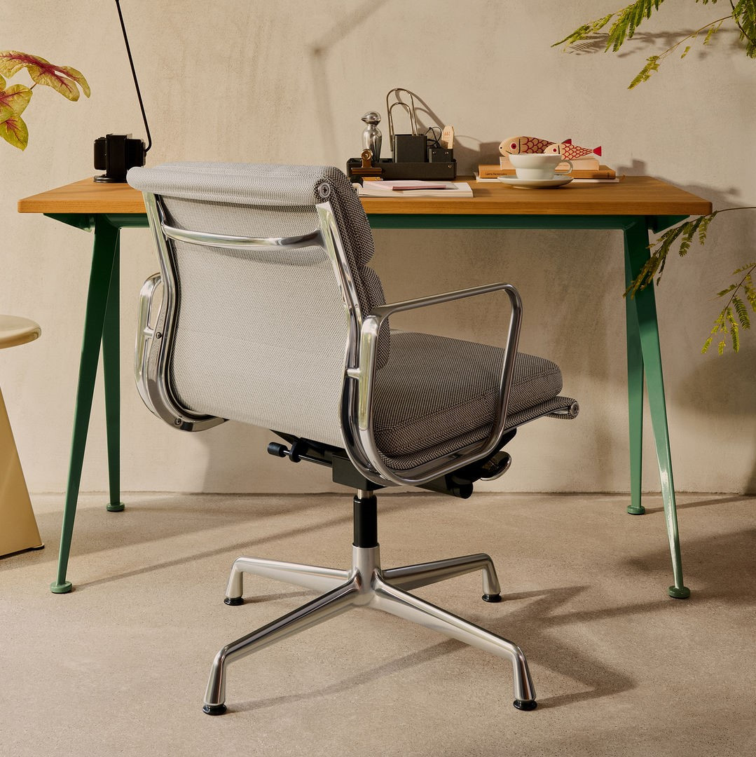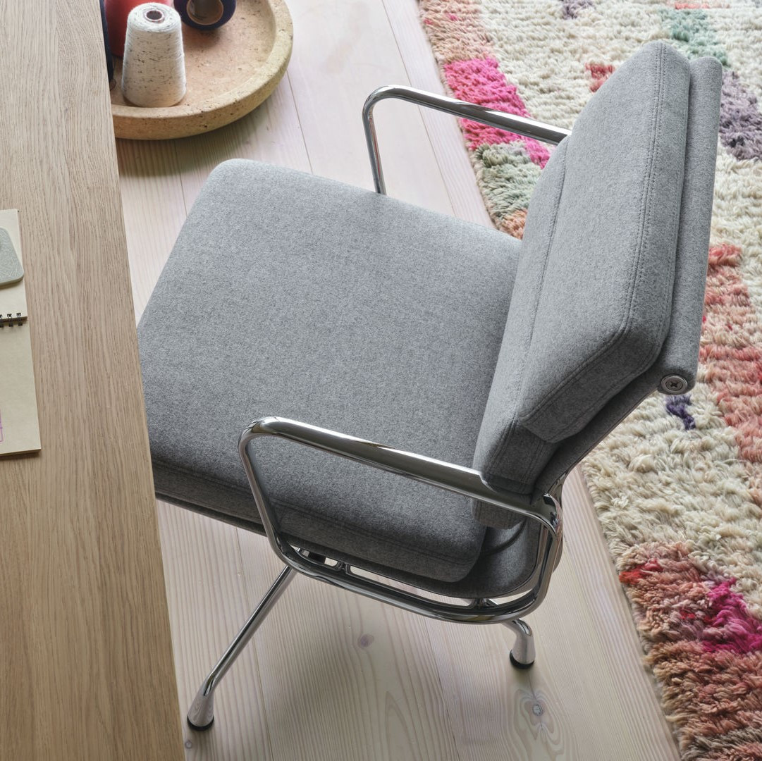 Model Eames Soft Pad Chair EA 231 dostępny jest w wielu wariantach wykończenia – możesz wybrać kolor podstawy, rodzaj tkaniny lub elegancką tapicerkę skórzaną, dopasowując ten nowoczesny fotel biurowy do charakteru swojego wnętrza. Dołączone zdjęcia aranżacyjne prezentują przykładowe konfiguracje i kolory, pozwalając lepiej poznać możliwości personalizacji tego kultowego projektu.