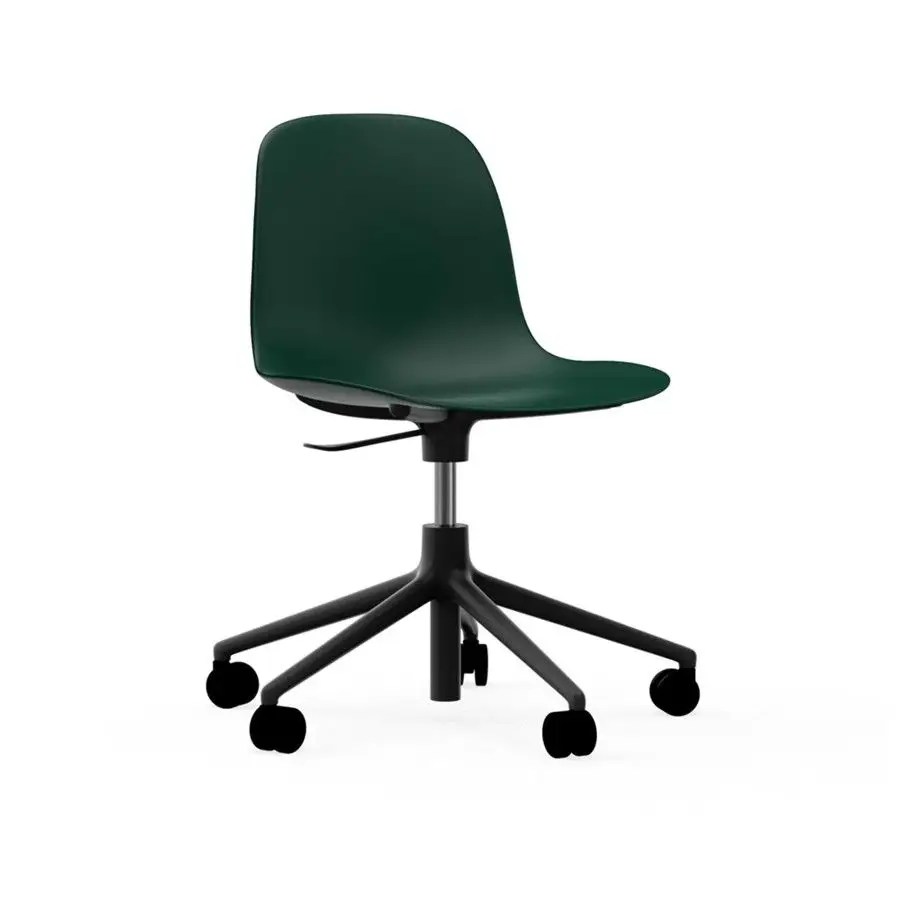 Komfortowe krzesło biurowe z serii Form marki Normann Copenhagen ukazuje swój nowoczesny wygląd oraz uniwersalizm. Lekki design krzesła stwarza elastyczne możliwości aranżacji od tradycyjnych do nowoczesnych wnętrz zarówno tych domowych jak i o charakterze komercyjnym. Siedzisko i oparcie krzesła wykonane zostały z tworzywa polipropylenowego zaś podstawa to aluminium lakierowane na czarny kolor. Krzesło posiada regulowaną wysokość.