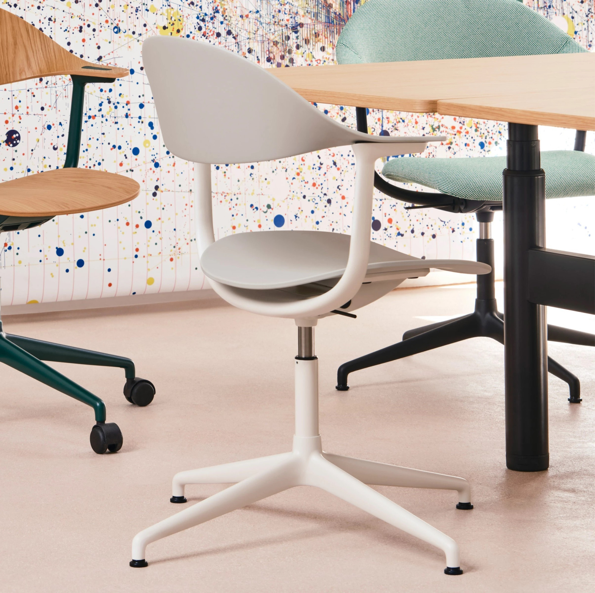 To nowoczesne krzesło biurowe osadzone jest na stabilnej czteroramiennej podstawie (four star base), dostępnej w kilku wariantach kolorystycznych i wyposażonej w ślizgacze filcowe do twardych podłóg. Minimalistyczna forma i trwałe materiały sprawiają, że Mynt doskonale sprawdza się w domowych biurach, przestrzeniach pracy oraz wnętrzach publicznych.