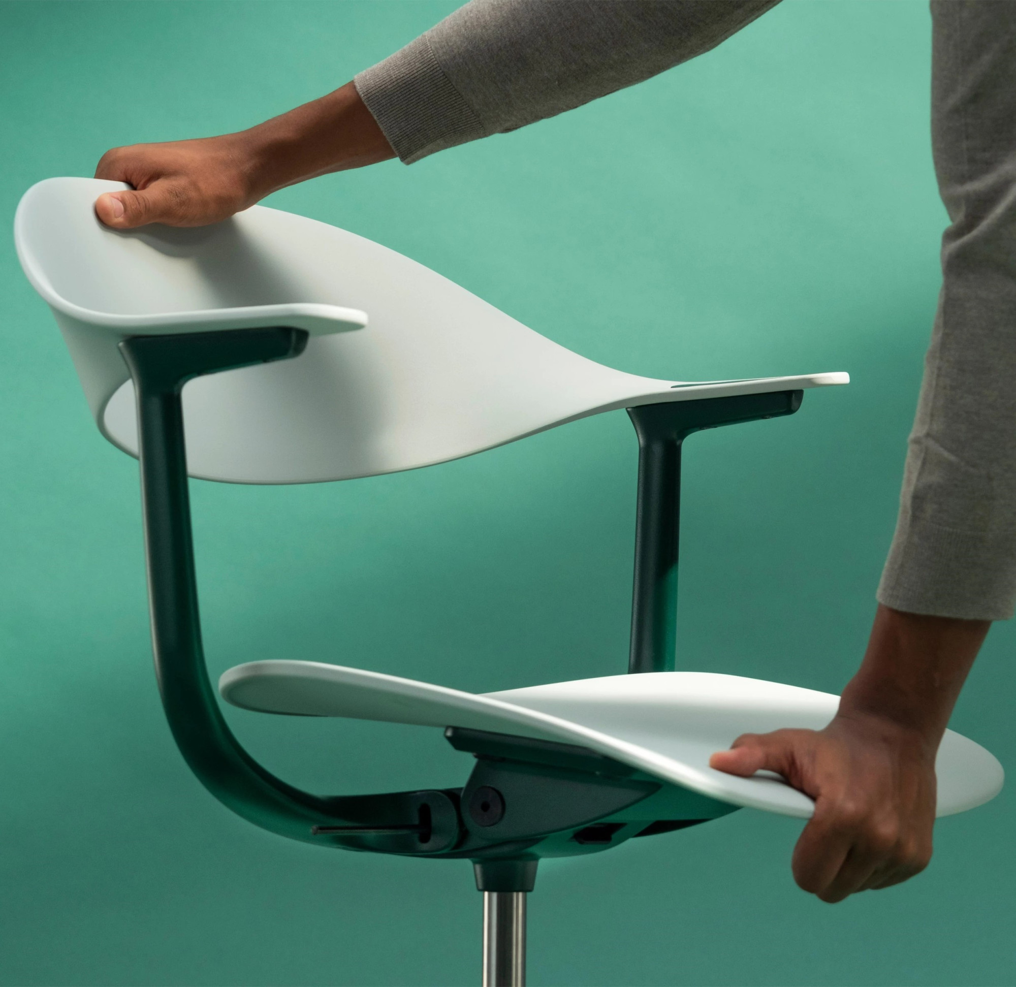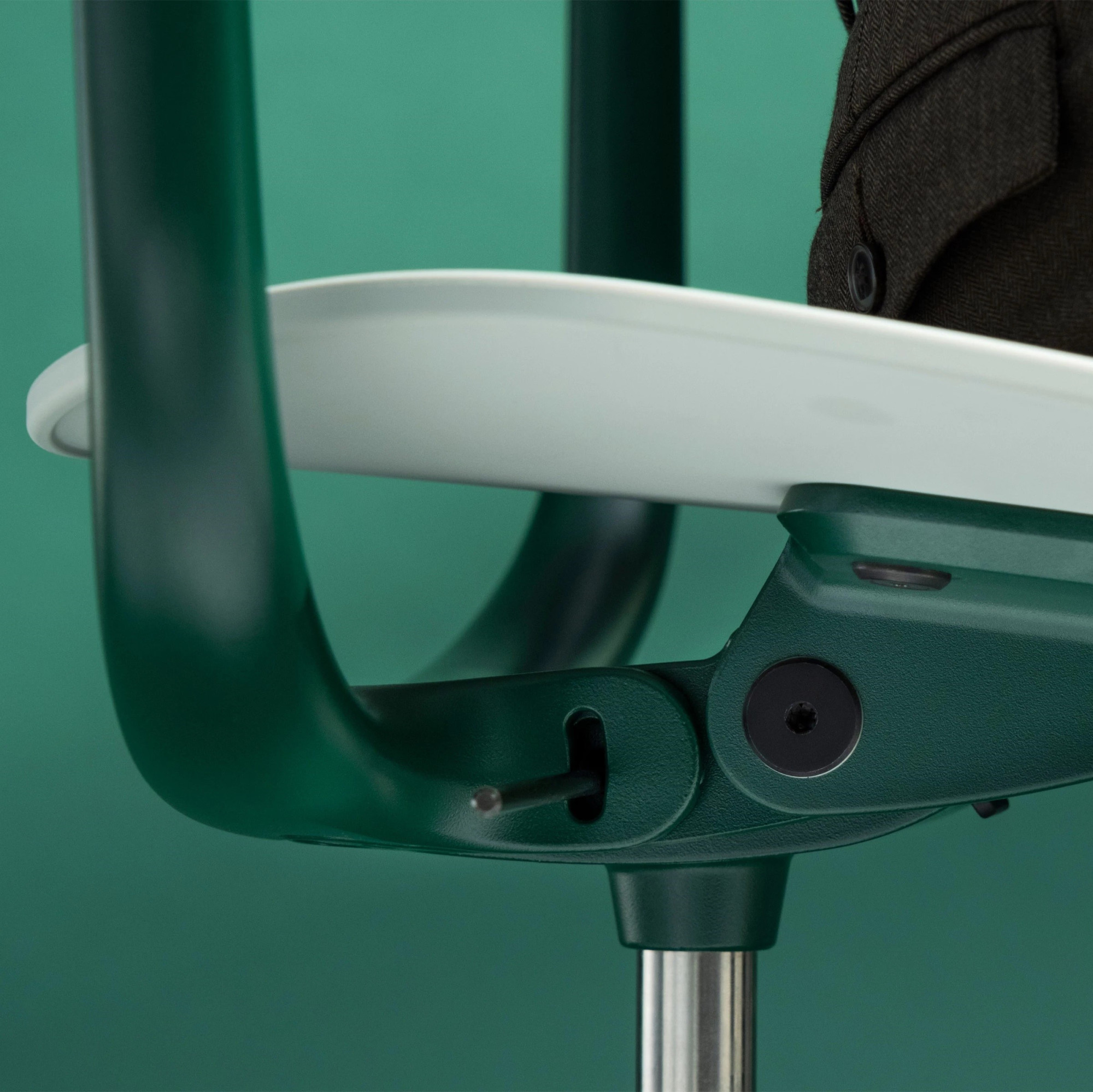 Krzesło biurowe Mynt marki Vitra redefiniuje pojęcie dynamicznego siedzenia. Wersja z siedziskiem i oparciem z tworzywa sztucznego (plastic) łączy nowoczesną, uniwersalną estetykę z zaawansowaną ergonomią krzesła zadaniowego. Kluczowym elementem jest opatentowany mechanizm, który reaguje na ciężar ciała i umożliwia płynne odchylanie siedziska niezależnie od oparcia, automatycznie dopasowując opór ruchu – regulacji wymaga jedynie wysokość.