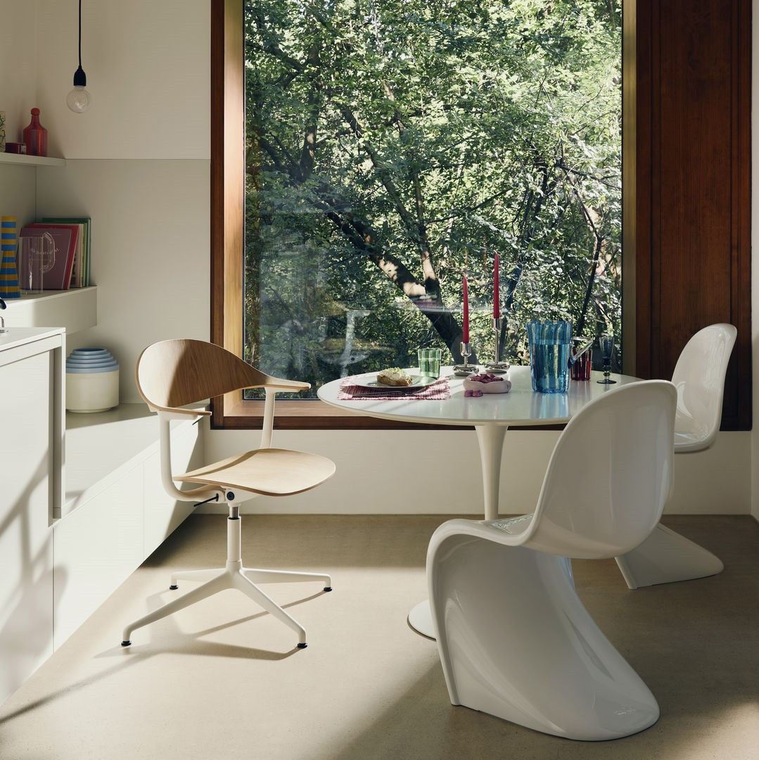 Krzesło biurowe Mynt marki Vitra redefiniuje pojęcie dynamicznego siedzenia. Model z siedziskiem ze sklejki łączy domową estetykę z zaawansowaną ergonomią krzesła zadaniowego. Kluczowym elementem jest opatentowany mechanizm, który reaguje na ciężar ciała i umożliwia płynne odchylanie siedziska niezależnie od oparcia, automatycznie dopasowując opór ruchu - regulacji wymaga jedynie wysokość.