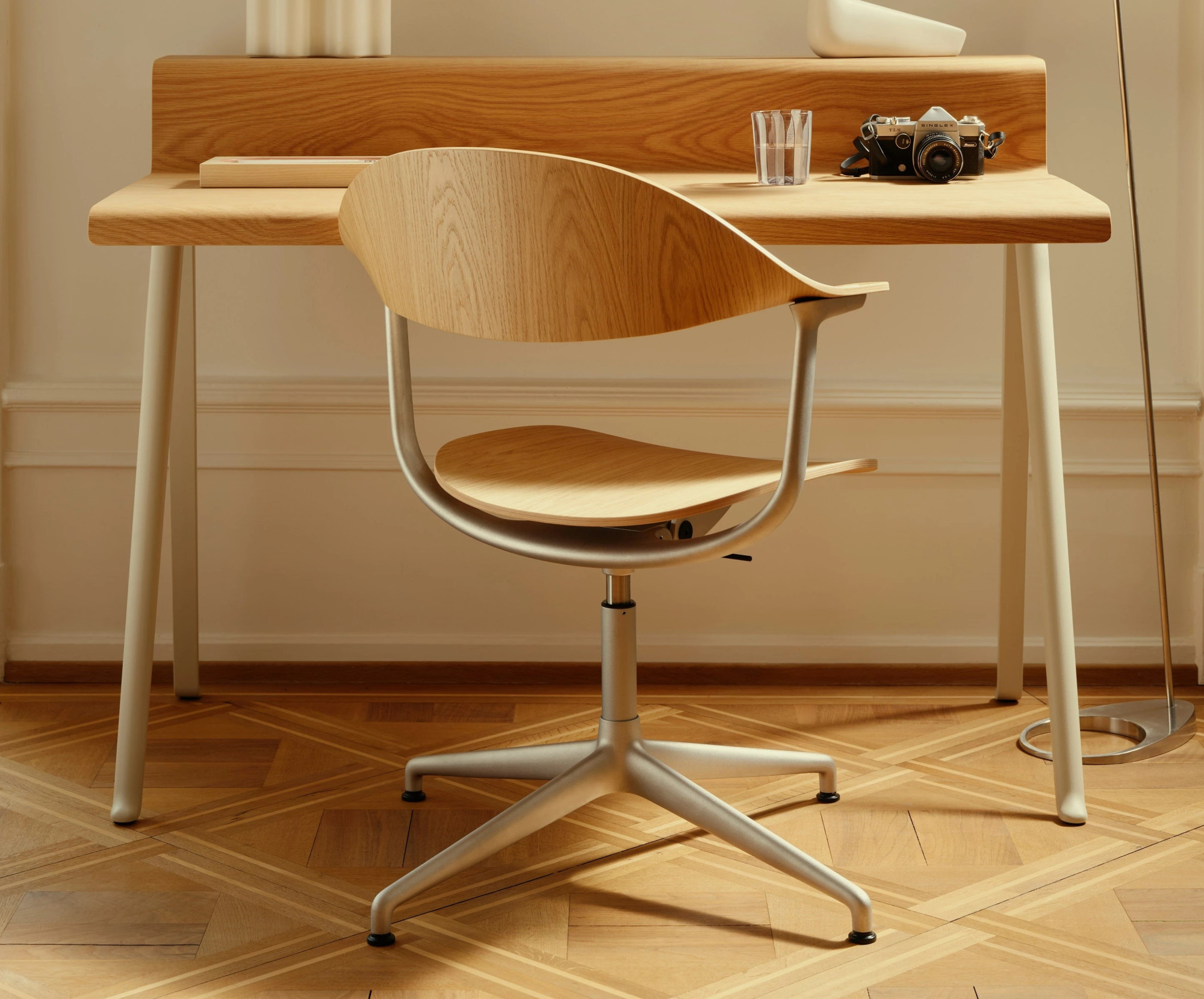 Krzesło biurowe Mynt marki Vitra redefiniuje pojęcie dynamicznego siedzenia. Model z siedziskiem ze sklejki łączy domową estetykę z zaawansowaną ergonomią krzesła zadaniowego. Kluczowym elementem jest opatentowany mechanizm, który reaguje na ciężar ciała i umożliwia płynne odchylanie siedziska niezależnie od oparcia, automatycznie dopasowując opór ruchu - regulacji wymaga jedynie wysokość.