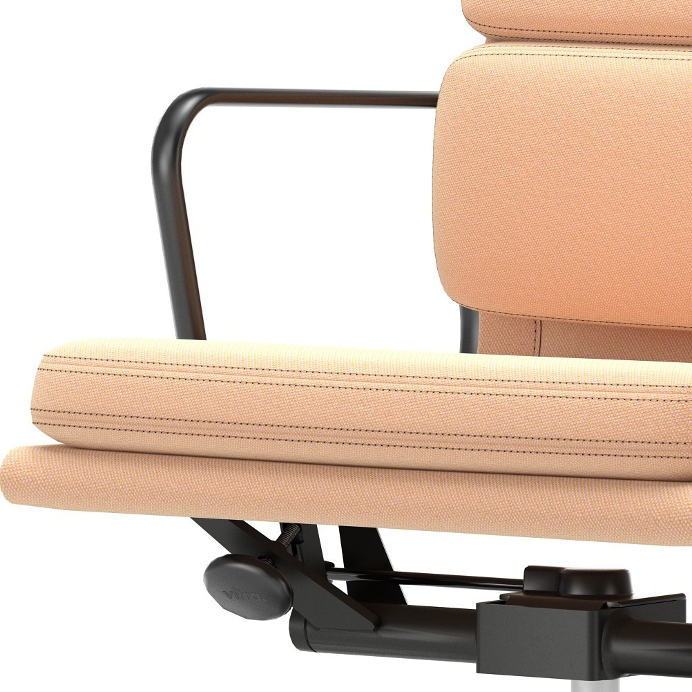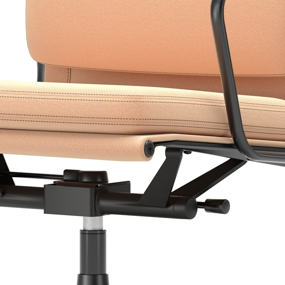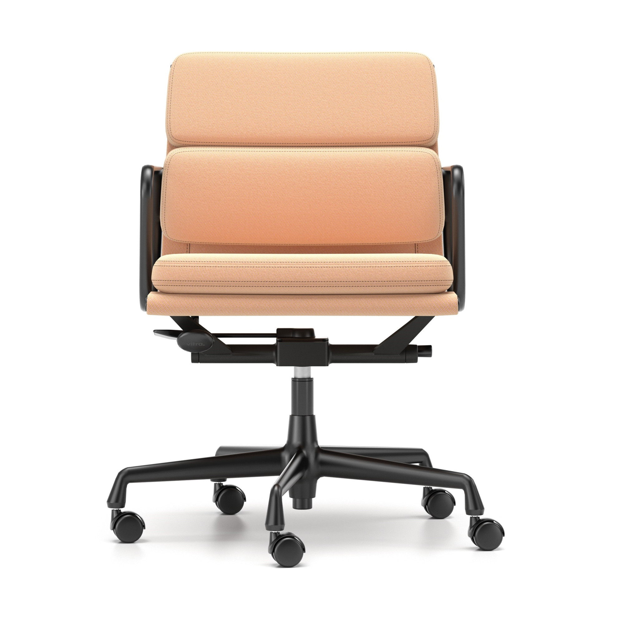 Luksusowe krzesło biurowe EA 217 z kolekcji Soft Pad Chairs łączy ponadczasowy design z wysokim komfortem pracy, idealne zarówno do wnętrz publicznych, jak i domowego biura. Tapicerka w odcieniu Track Pink/Mustard połączona z czarną, pięcioramienną podstawą, nadaje wnętrzu profesjonalnego charakteru. Krzesło posiada miękkie kółka do twardych podłóg, idealne do paneli, drewna i płytek, zapewniając płynne przesuwanie i pełną stabilność. Średnio wysokie oparcie oraz regulacja kąta nachylenia i wysokości siedziska gwarantują wygodę nawet przy wielogodzinnej pracy.
